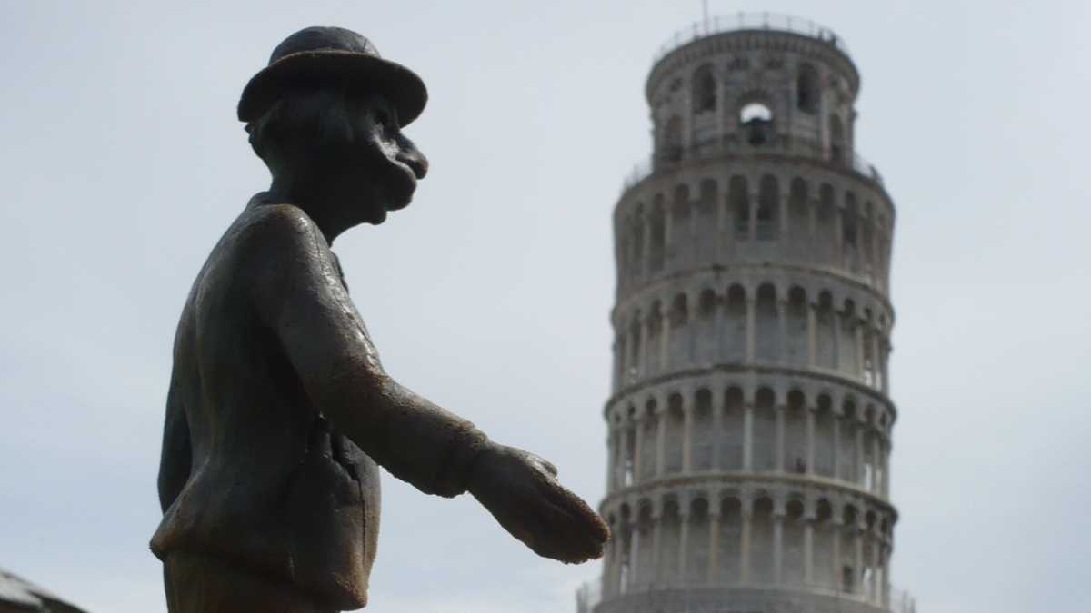 După o noapte furtunoasă în Barcelona, Nae urcă în trenul spre Franța, salută politicos sud-americanii colegi de compartiment şi, via Figueras-Perpignan-Cannes, ajunge la Pisa. Să dea un brînci turnului cu defecte de construcţie pe care toată lumea se oferă să-l sprijine în poze. Tot plimbîndu-se prin oraş, se întîlneşte cu un vechi amic, Pinnochio, care face cinste cu o pizza la cuptor cu lemne.