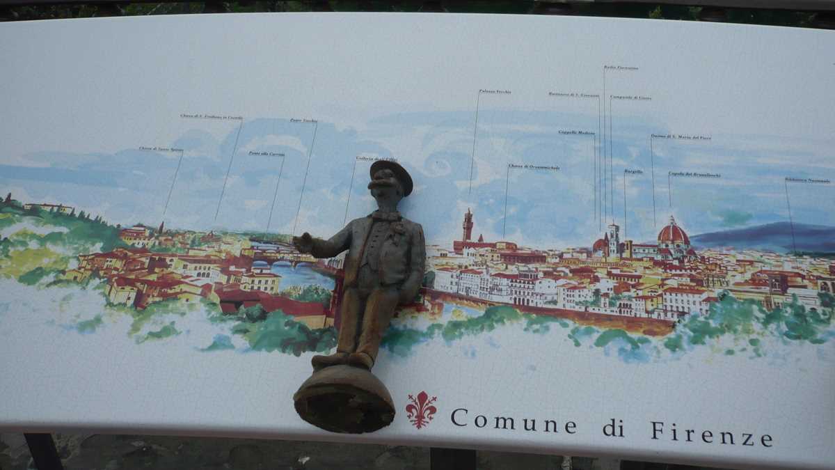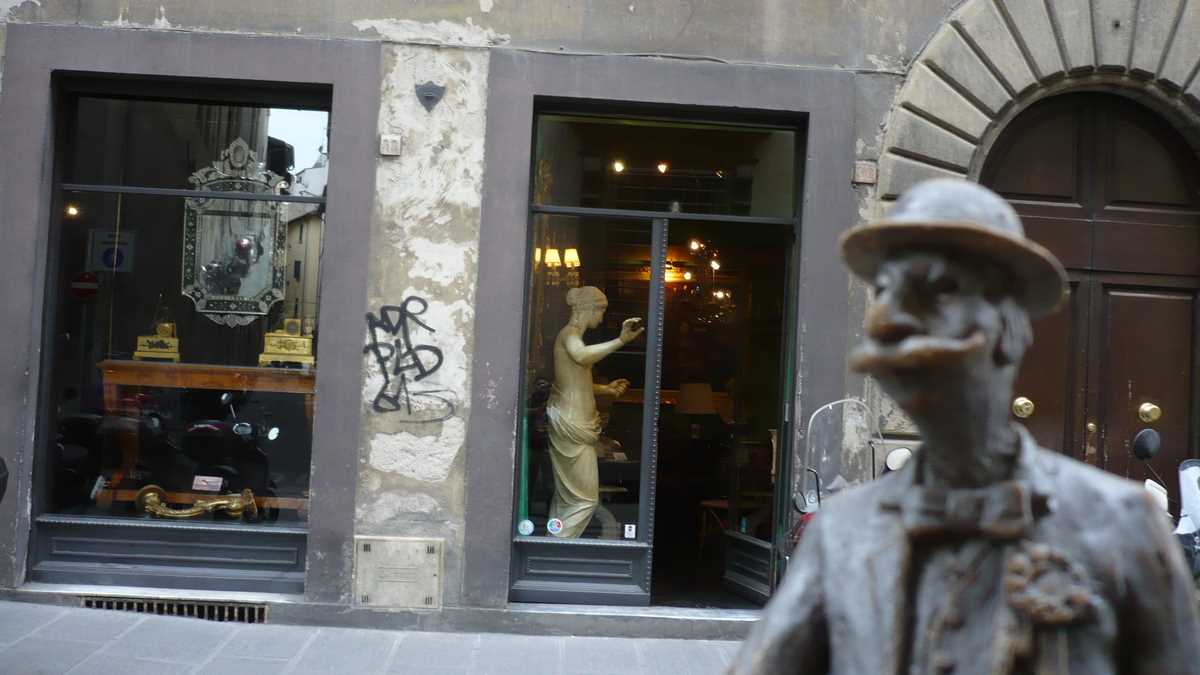 O ia apoi în amonte pe Arno pînă la Florenţa, pentru a onora invitaţia la o recepţie a familiei Medici. Nu se făcea să lipsească de la o asemenea întrunire selectă: Michelangelo, Leonardo da Vinci, Botticelli, Rafael, Brunelleschi, Donatello, Masaccio, Galileo Galilei. Unii dintre ei discută ceva despre o Renaştere, sau cam aşa ceva (n-a înţeles prea bine că se vorbea în şoaptă) – probabil un partid de opoziţie.