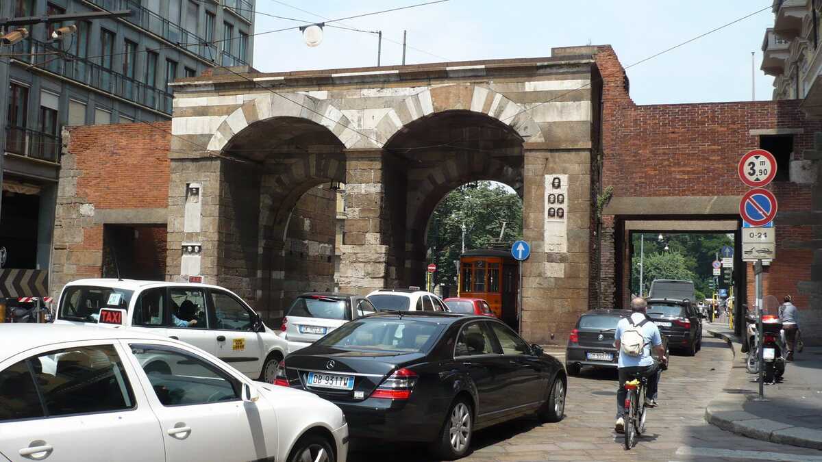 Undeva pe dreapta se văd nişte ziduri sobre. E Castello Sforzesco, o cetate rătăcită în centrul oraşului din alt timp, înconjurată de şanţuri cu apă şi poduri din lemn care se ridică cu lanţuri la primul semn de pericol. Intrat în curtea interioară, crenelurile, foişoarele-turn de pe colţuri şi aerul cazon te fac să te simţi ca într-o plimbare zilnică de închisoare. Brr!