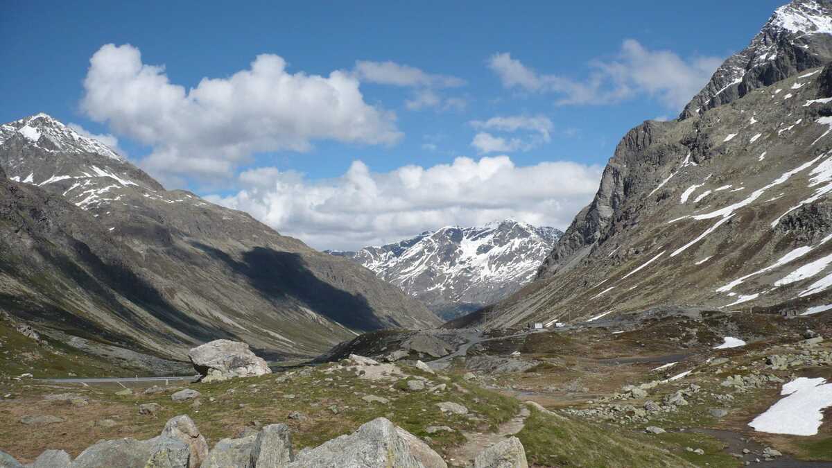 Continui urcuşul (pe o pantă în care consumul instantaneu al maşinii te duce cu gîndul la o alimentare din mers, ca la avioane) şi ajungi în sfîrşit deasupra. Julierpass – 2.284 m altitudine, după cum scrie mîndru pe indicator. Zăpadă! Şi îţi vine să încingi o bătaie cu bulgări, în mijlocul verii. De parcă ai trecut brusc în emisfera ailaltă.