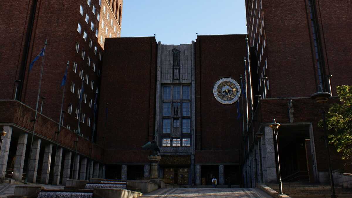 Cobori apoi pe Haakon VII pînă la Rådhuset – Primăria, aflată foarte aproape de port. O clădire construită în stil socialist, care arată aşa cum ar fi ieşit Turnurile Gemene, dacă ar fi fost proiectate de comunişti. Nici teroriştii nu s-ar mai fi obosit să le pună jos…
