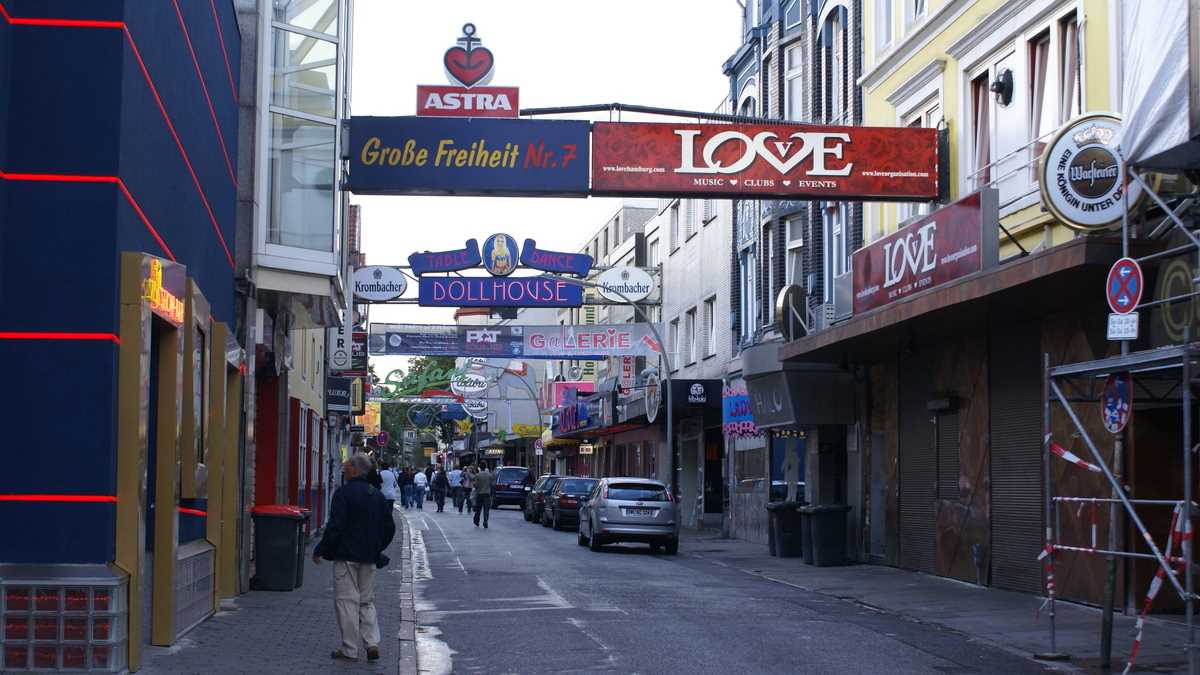 La ieşirea din parc începe Reeperbahn, principalul bulevard din cartierul St. Pauli, considerat cel mai mare Red Light District din Europa. Şi cel mai complet: bordeluri, cazinouri, sex-shop-uri, baruri şi cluburi de noapte. Aici şi secţia de poliţie e perete în perete cu un teatru erotic… De referinţă şi notoriu e faptul că Beatles au locuit în St. Pauli la începutul anilor ’60 şi şi-au început cariera cîntînd în cluburi de pe Reeperbahn: Indra, Kaiserkeller, Top Ten Club, Star-Club. Generaţia flower-power se năştea copil din flori. Mai exact, din iarbă.