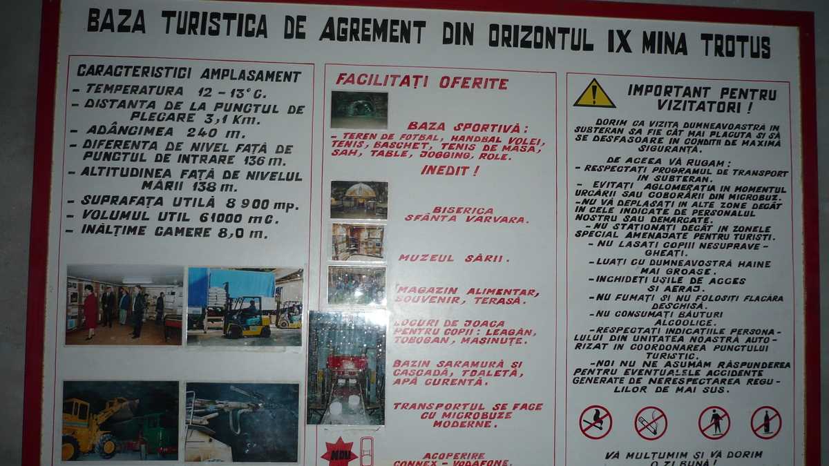 După ce ai compostat biletul (18 ron/adult), autobuzul pe care pămîntul îl înghite la fiecare jumătate de oră coboară o spirală de vreo trei kilometri spre Orizontul IX – Baza de tratament (exploatarea continuă în galeriile de sub miniorăşelul turistic, la nivelurile X şi XI).