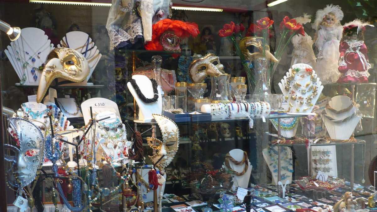 Apoi intri în labirintul de străduţe înguste, în care te pierzi uşor dacă nu stai cu ochii pe indicatoare – nişte plăcuţe mîzgălite plasate în cele mai năstruşnice locuri, multe dintre ele graffiti-ţepe. Prăvălii cu măşti de carnaval de la zece la sute de euro, tarabe cu flori, fructe exotice, legume, brînză, peşte, nucă de cocos, de vînzare cu bucata, restaurante cu măsuţe pe buza canalelor, viermuială de turişti, bazar cu suveniruri direct pe podul Rialto.