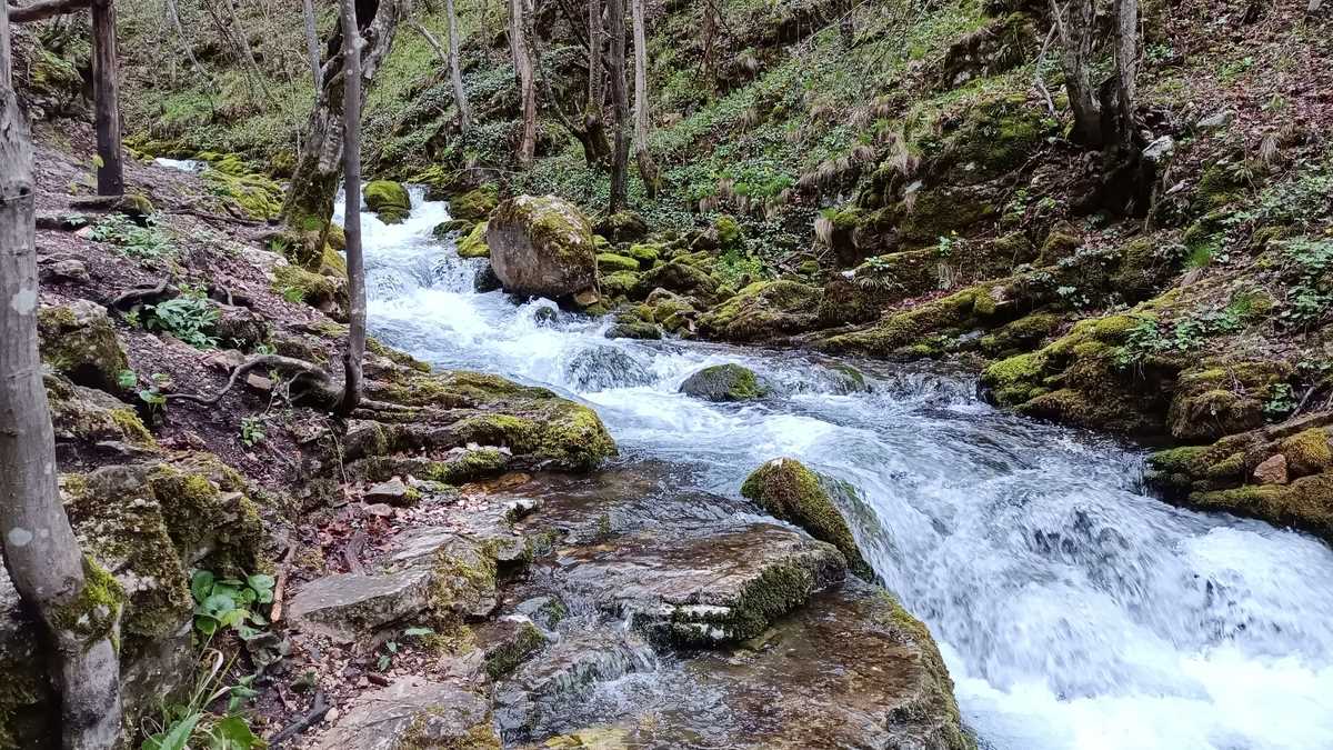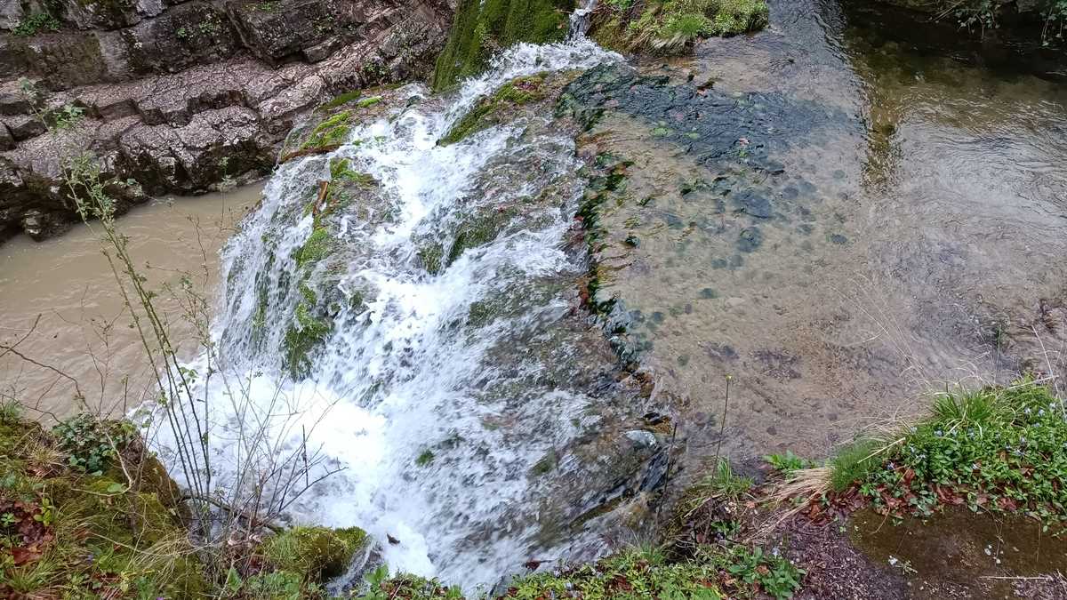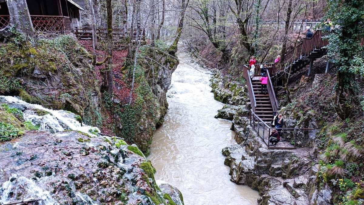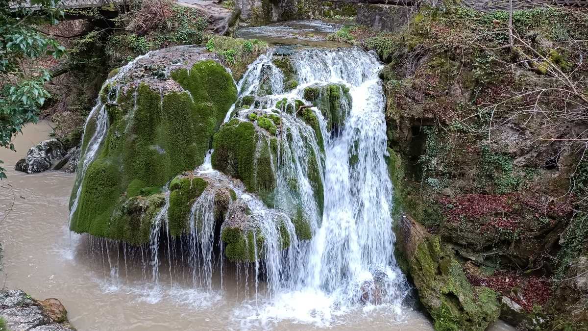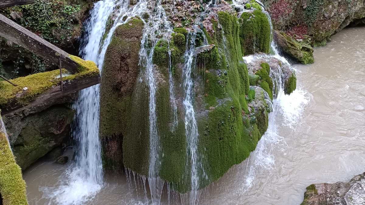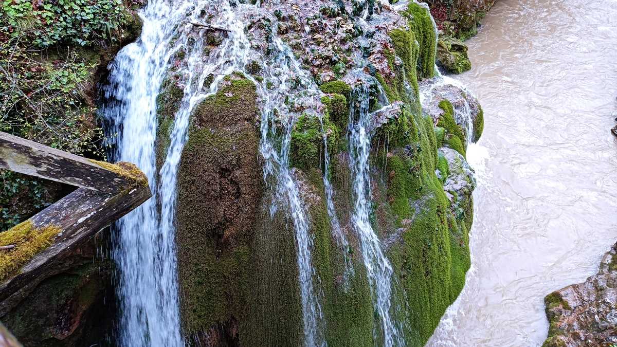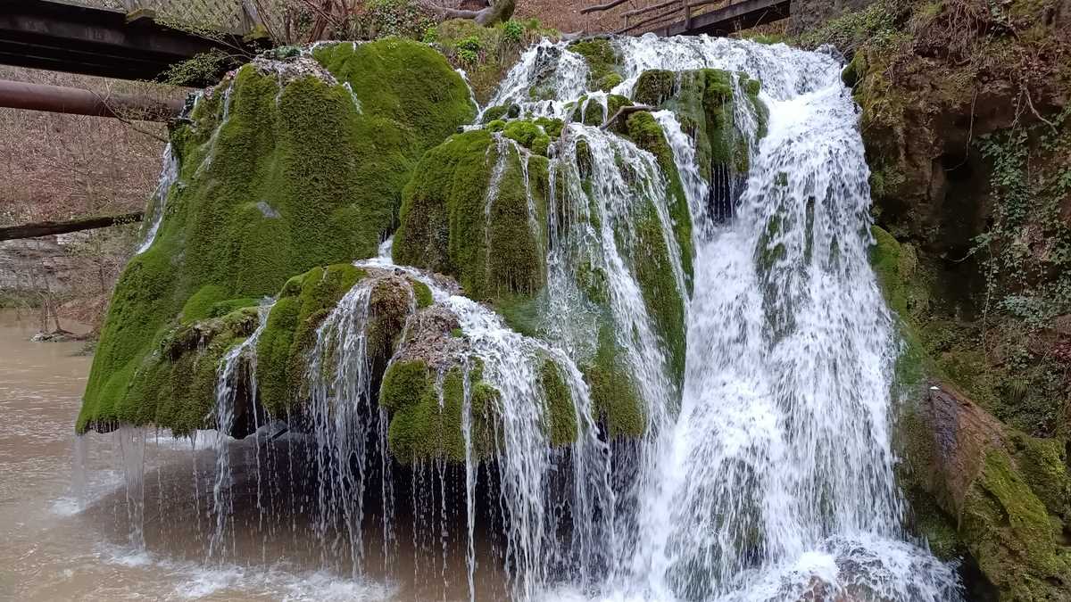 După alte zece minute ești înapoi, pe lîngă Bigărul care curge necontenit în trepte pentru ca, vreo două sute de metri mai la vale, șiroaiele lui strecurate prin vegetația pîlcului de ciuperci din tuf calcaros rotunjit de trecerea apei să formeze o perdea fină de firicele lichide și stropi căzuți ca de pe o umbrelă în apele Minișului. O imagine deosebită pentru ochiul obișnuit cu apa sub formă de pet sau șuvoi de robinet, deci degetele caută instinctiv butoanele camerei foto. Văzută din alte unghiuri, de jos, de la capătul platformei cu trepte spre albia Minișului, e și mai arătoasă. Mai ales în aprilie-mai, cînd abundența precipitațiilor și topirea zăpezilor alimentează consistent căderea de la șase-șapte metri a torentului împrăștiat și filtrat de straturile de mușchi.