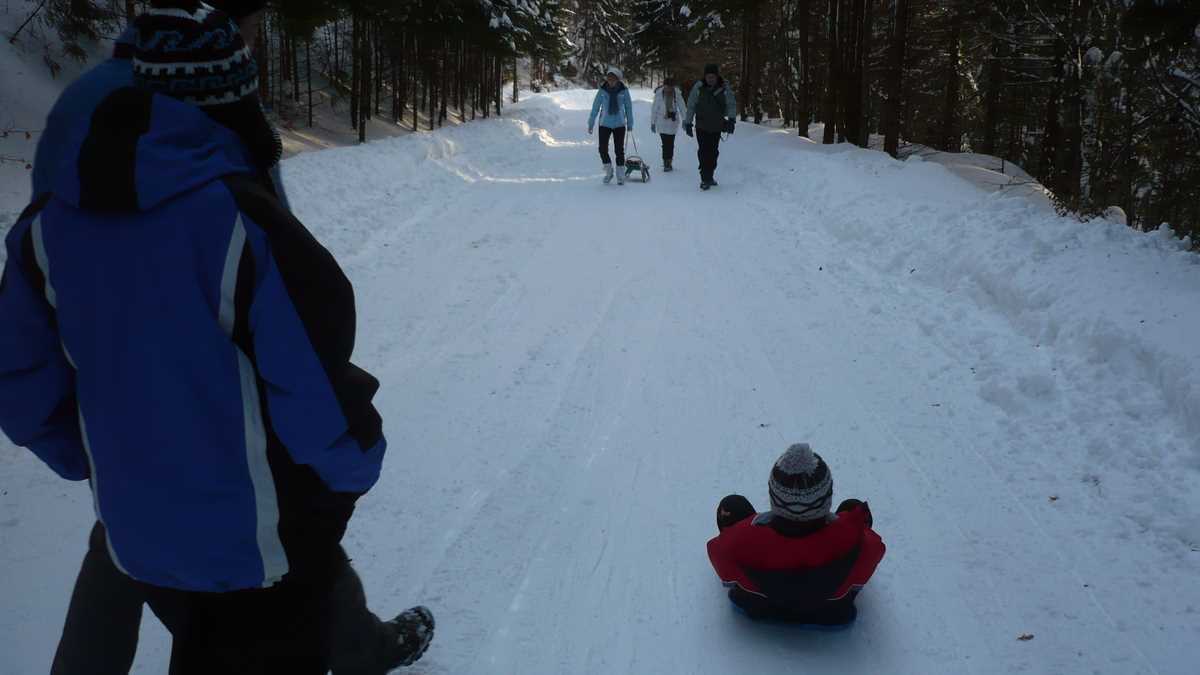 Coboară din mașină, dezmorțește-te, respiră. Cît timp copiii testează entuziasmați zăpada, premiază-te cu un vin fiert (5 lei paharul) de la barul-terasă vecin cu întreprinzătorul care închiriază sănii cu tălpi din schiuri (20 lei/zi) și oferă tractare din vale cu o Lada 4×4 (10 lei urcarea). Ar fi momentul, deci, să schimbi vehiculul și să vă continuați drumul alunecînd pe kilometrul de pîrtie amenajată ad-hoc pe șoseaua ce coboară spre lac. Deși de la capătul drumului mai sînt doar cîteva zeci de metri pînă pe malul Sfintei, multă lume nici nu mai ajunge acolo, preferînd să repete traseul sus-jos pe derdelușul improvizat.