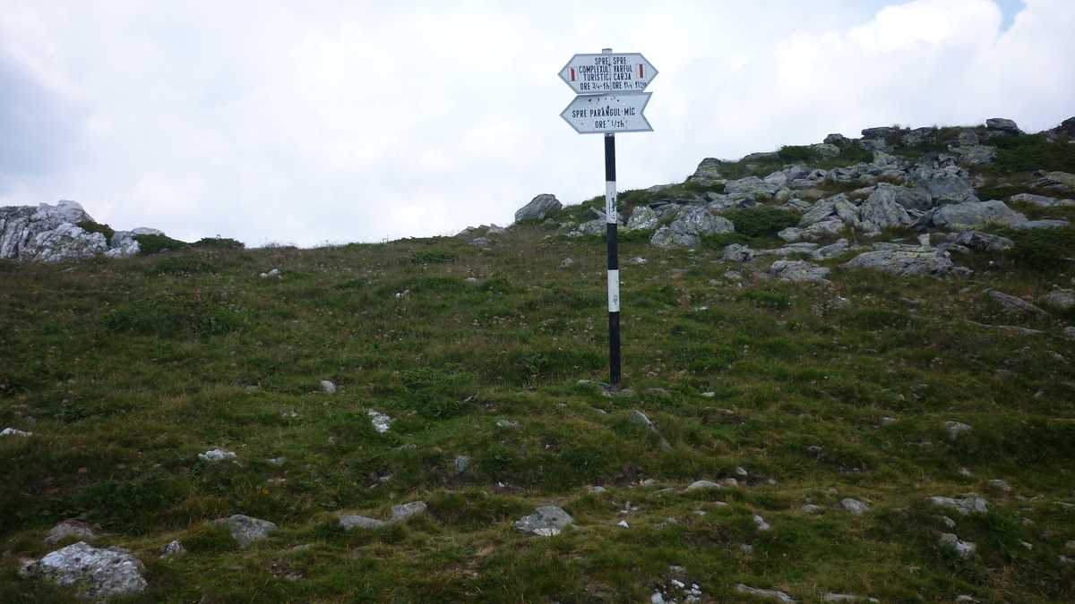 Dimineață. Gîfîim deja de minute bune, pe cărarea care urcă pieptiș muchia stîncoasă spre Cîrja. Imediat sub vîrf, un cort și niște oameni pe izoprene: cercetașul samaritean și familia sa, soția și puștiul de vreo 10 ani, la micul dejun. Salutăm, schimbăm cîteva cuvinte (Sper că au ajuns cu bine în vale, aseară), apoi continuăm, urcînd susținut spre vîrf. Parîngul Mare (2.519 m): lăsăm rucsacurile într-un scoc de stînci, ferit de vînt, și ne aliniem lîngă indicator pentru poza oficială.