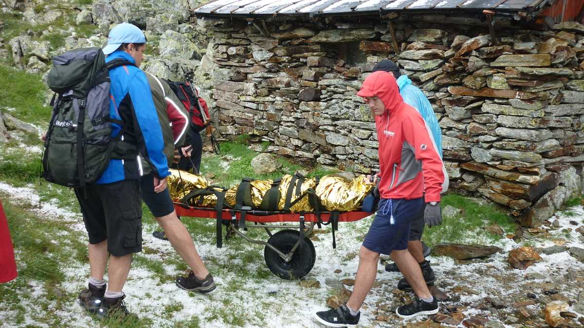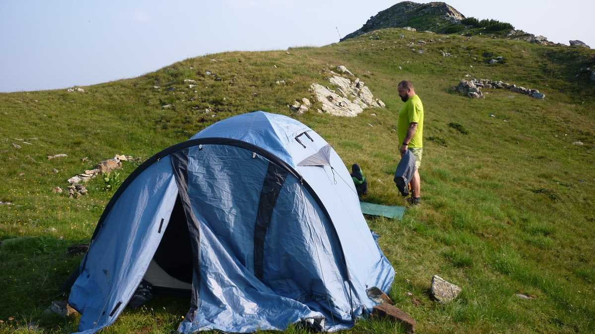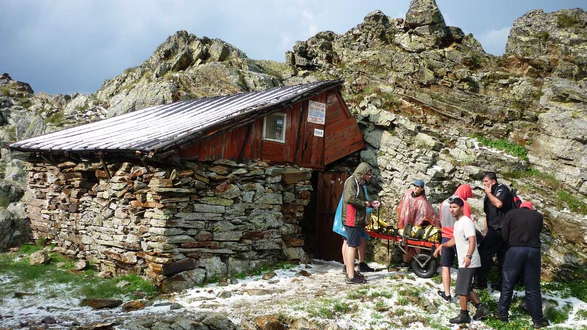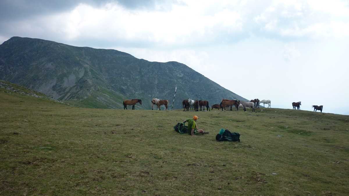 Ne despărțim de parapantiști, luînd-o în sens invers lor, pe traseul bandă roșie. Parîngul e un munte sălbatic, în special pe versantul nordic: un Făgăraș cu aspect de Retezat, cînd te uiți din creastă spre lacurile căldărilor glaciare cu pereți abrupți, tăiați aproape vertical. După două ore de marș, sîntem pe o pajiște alpină din vecinătatea refugiului, lîngă o herghelie de vreo douăzeci de cai liberi (proprietarii îi lasă vara aici; unul dintre ei urcă, săptămînal, de control). O negură cu fulgere se apropie dinspre Retezat, în timp ce pe lîngă noi trec în grabă Dragoș și echipa de salvare, patru oameni și o targă, chemați la o intervenție pe Cîrja. O oră mai tîrziu, îi avem colegi de refugiu, pe o grindină cît fasolea: salvamontiștii, victima (o doamnă cu glezna defectă), soțul și camarazii ei de tură, plus un tip în uniformă de cercetaș care a coborît de la cortul său de pe Cîrja să dea o mînă de ajutor. După ce furtuna se îndepărtează, îi însoțim o scurtă bucată de drum, pînă la tăpșanul pe care instalăm cortul – doi sinistrați refugiați din adăpostul inundat.