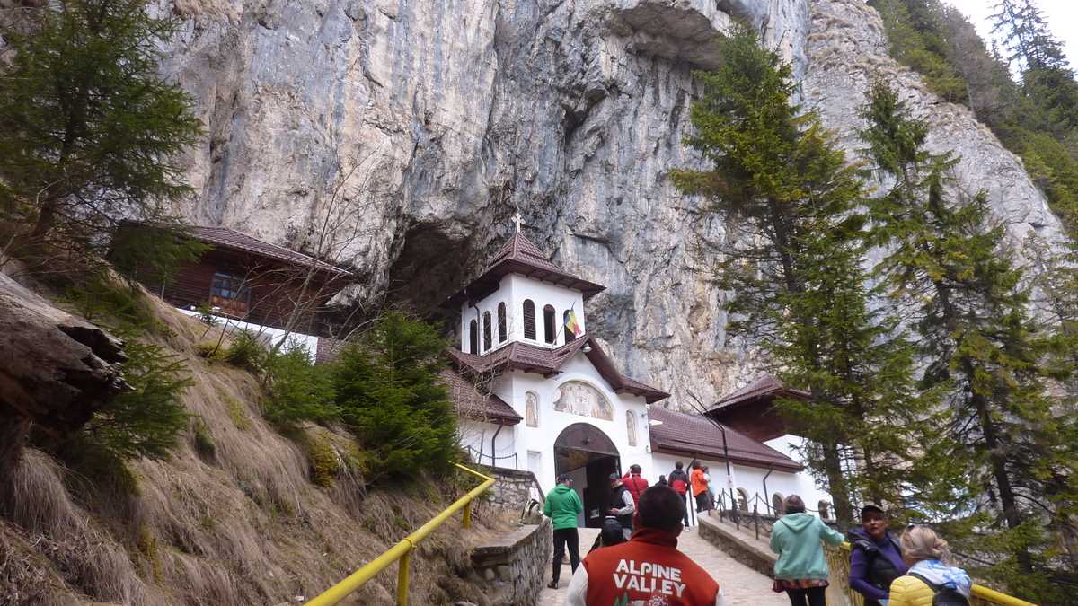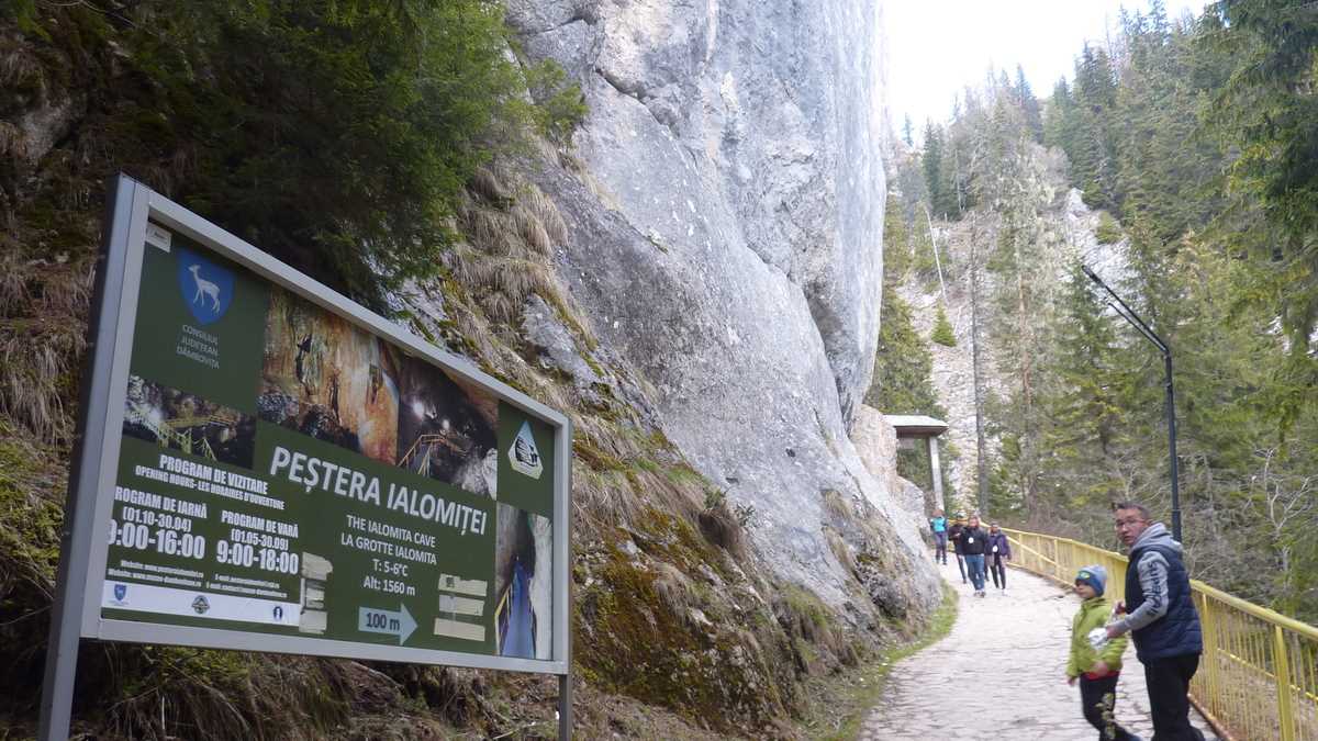 De pe platoul Padina-Peștera al Bucegilor centrali, un traseu marcat cruce albastră, care, pe porțiunea sa finală, se strecoară și printre pereții de stîncă ai Cheilor Ialomiței, te duce, peste podul rîului cu același nume, spre peștera cu același nume și mănăstirea cu același nume. Da, pe toate le cheamă așa, și da, există aici de multă vreme o mănăstire: Peștera Ialomiței, ale cărei cavități s-au format în sute de mii de ani de strecurare a apelor pîrîului Horoaba prin calcarele muntelui Bătrîna, a fost adăpost natural pentru pustnici, din negurile istoriei pînă în zilele noastre, prin poarta din lemn a Mănăstirii Ialomiței, ctitorită, pe la începutul secolului al XVI-lea, de voievodul Țării Românești Mihnea cel Rău trecînd de-a lungul timpului, spre schitul de sub bolta intrării, nenumărați călugări. Astăzi, locul le-a fost luat de turiști. Pentru că, greșit cunoscută popular, de la transmisia tip telefon-fără-fir marca „Din gură-n gură“, și ca Peștera Ialomicioarei (prin confuzie fonetică cu surata sa din Piatra Craiului, Dîmbovicioara), peștera asta are mare succes la public, fiind obiectivul turistic cel mai apreciat din județ, cu mai mulți vizitatori chiar și decît Turnul Chindiei din Tîrgoviște.