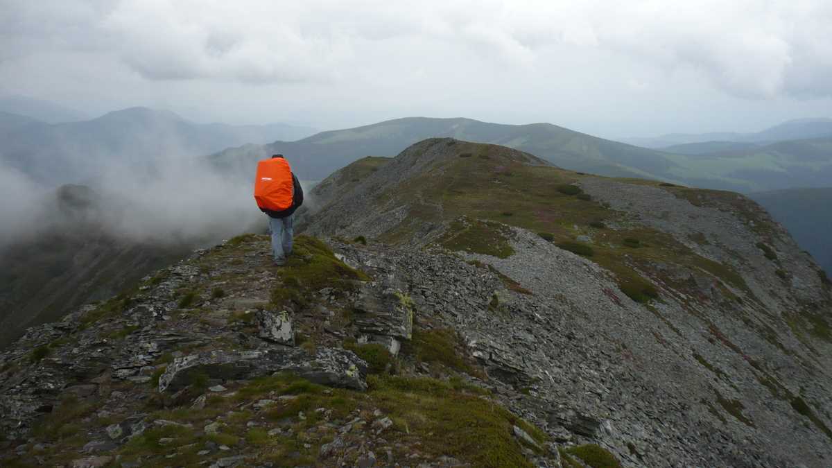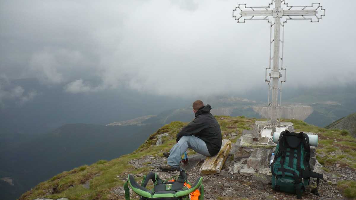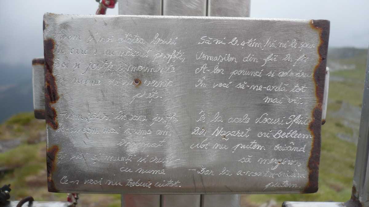 Brusc întristați, plecam mai departe cu cărarea care, șerpuind printre tufișuri de rododendron, urcă Negoiul Unguresc și, călărind lespezi și grohotișuri, atinge cea mai mare altitudine lîngă crucea metalică de pe Pietrosul Călimanilor (2.100 m). După pauza de vîrf, urma să ținem banda roșie pînă la întîlnirea cu punctul roșu și să continuăm pe creastă spre 12 Apostoli, cu coborîre pe punct albastru la o pensiune din Gura Haitii. Dar, așa cum veți citi în episodul următor, urmărind cu încredere un traseu proaspăt marcat, aveam să ajungem în cu totul altă parte.