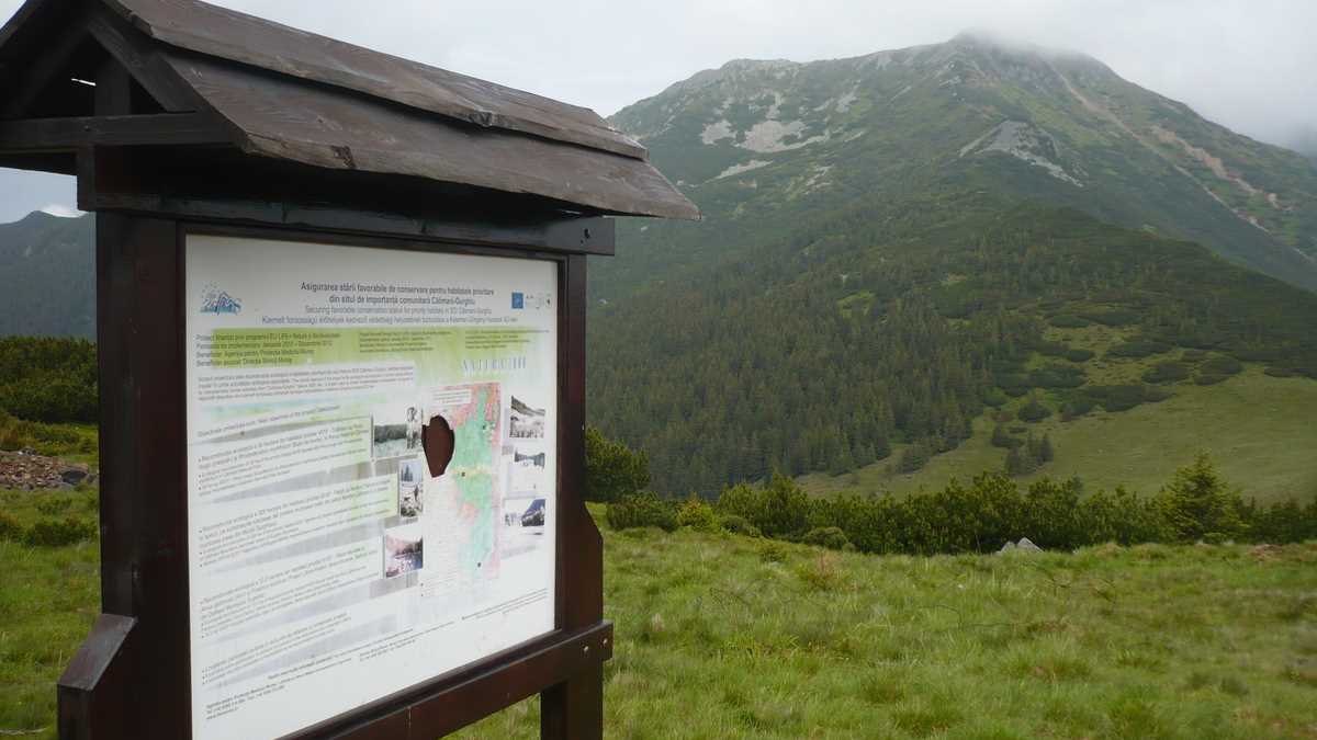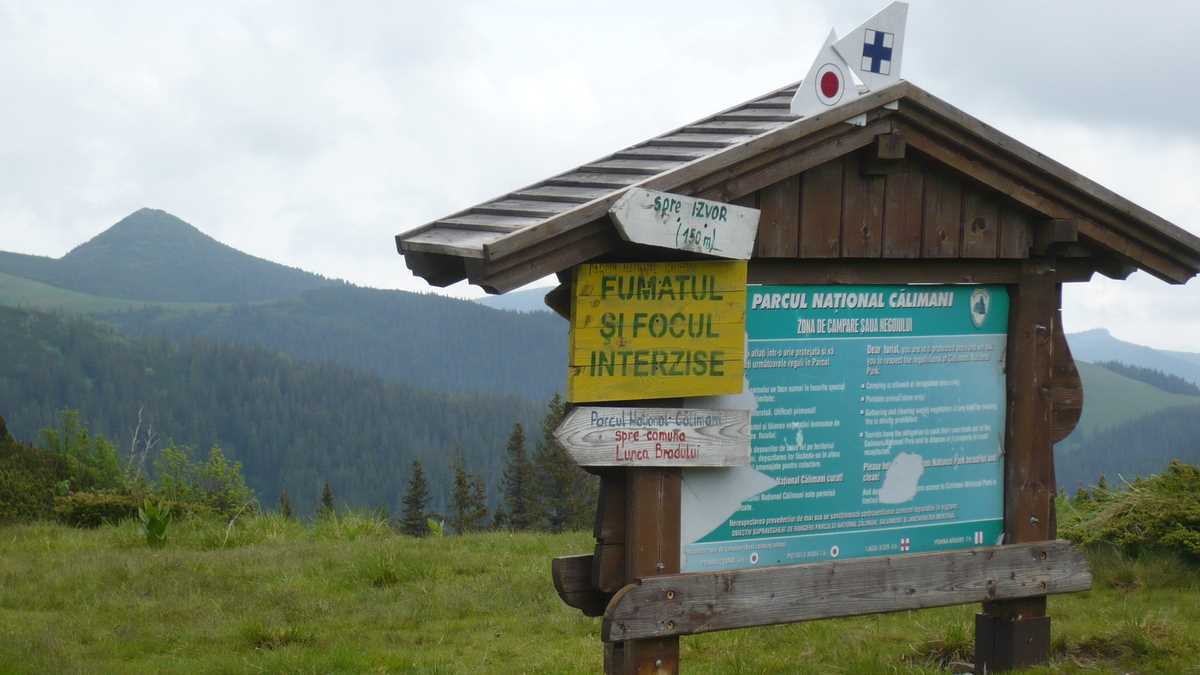 Săptămîna trecută, am făcut echipă cu bunul meu prieten Cătălin, într-un fel de concurs de orientare turistică (mai exact, un concurs de împrejurări turistice…, dar să nu anticipez) prin Călimani, spre vîrful cel mai înalt, Pietrosul Călimanilor. Startul s-a dat luni dimineață: un taxi ne-a dus din Toplița pînă la monumentul eroilor din WW1 (8 km = 16 lei), fix lîngă indicatorul cu informații foarte optimiste (Lacul Iezer, 7,5-8,5 ore; Șaua Rețitiș-Stația Meteo, 8-9 ore) de la marginea unui drum prăfuit, de țară. Providența ne-a trimis, însă, miloasă, o camionetă pentru colectarea laptelui, care ne-a zgîlțîit, agățați de cisternă, vreo zece kilometri, pînă la marmitele puse într-un pîrîu, la rece.