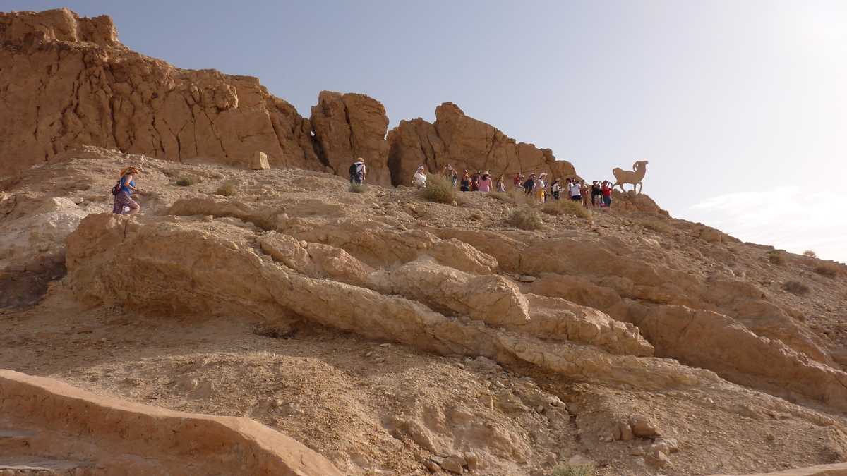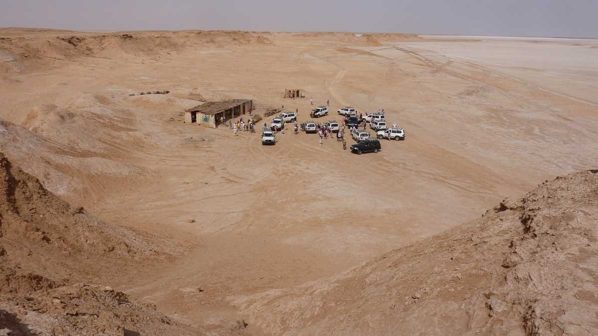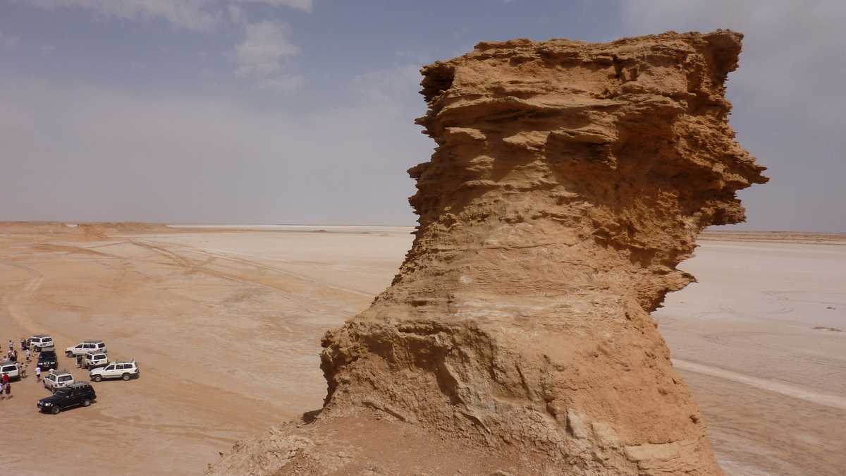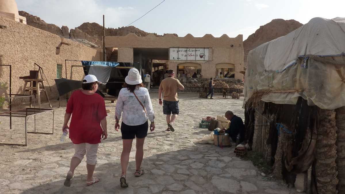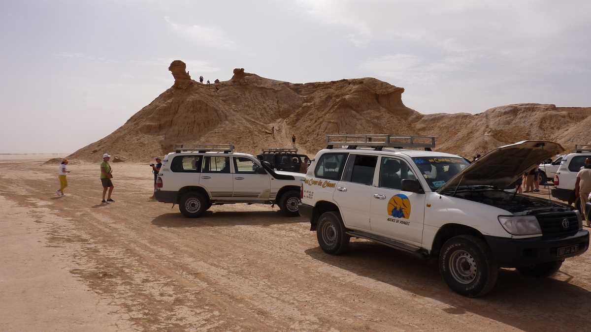 Și, dintr-odată, printre zgîlțîielile urcărilor și coborîrilor în viteză pe rîpele dunelor, apare la orizont Onk Ejmel, Gîtul Cămilei, o colină stîncos-nisipoasă sculptată de vînt în forma unui cap de dromader, un fel de Sfinx-Babă tunisiană, dar mult mai celebră. Nu credeți? Mai discutăm despre asta cînd s-o filma pe platoul Bucegilor vreun The English Patient, pentru că orășel Star Wars cum au tunisienii, la vreo doi kilometri de Onk Ejmel, n-o să vedem prea curînd la Bușteni.
