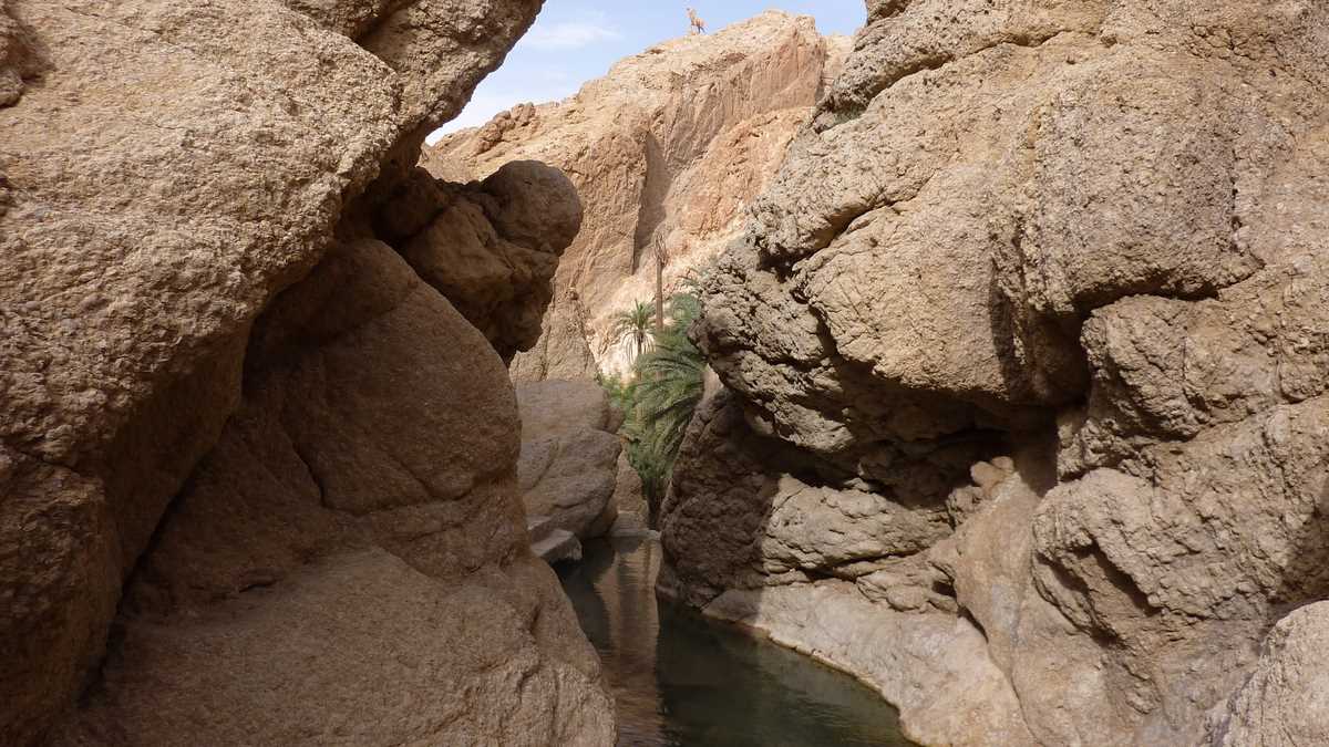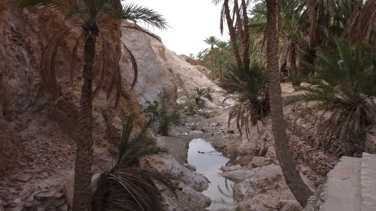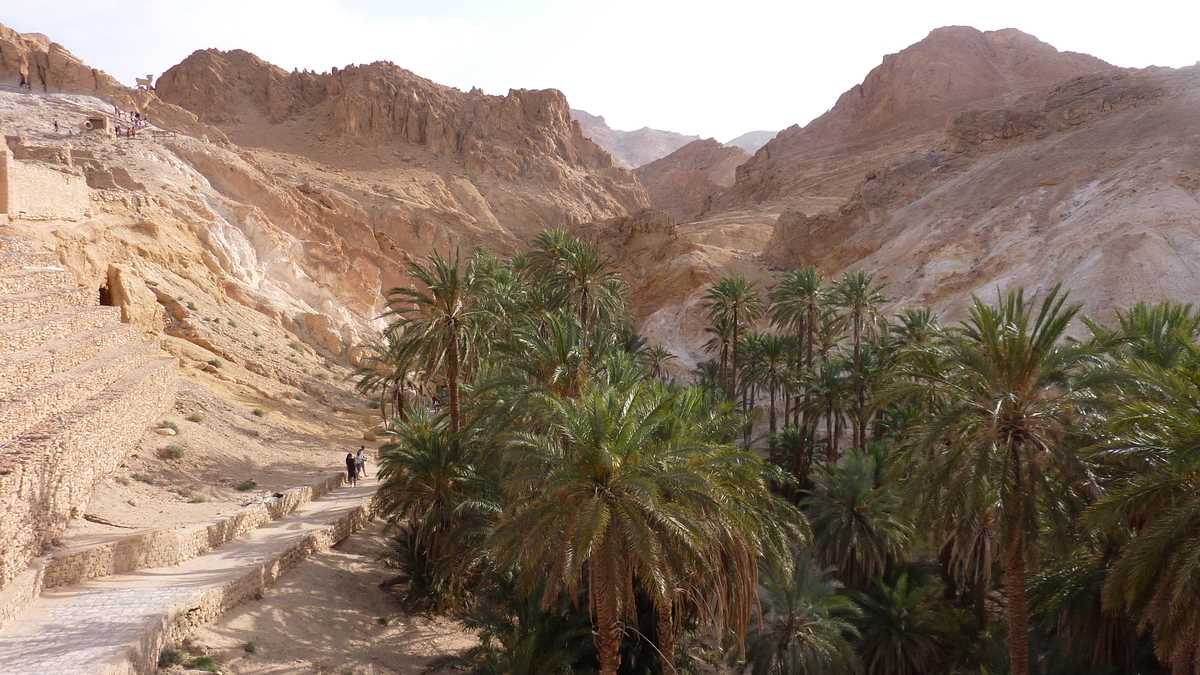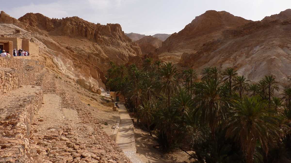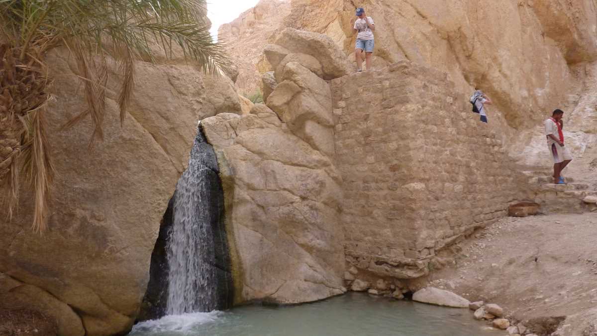 După apus și răsărit în deșert, ce trebuie să mai vezi neapărat în Sahara e o oază adevărată. (Am mai spus-o, nu insist prea mult: pentru tunisieni, oază e orice loc care are apă. Inclusiv Matmata, în care cactușii sînt singura formă de vegetație și oamenii se ascund de soare trăind sub pămînt, localitatea troglodită beneficiară a unui proiect hidrotehnic major de infrastructură al guvernoratului: conductă de apă adusă de hăt-departe, din afara deșertului.) De exemplu, Chebika, o oază montană cumva atipică în comparație cu imaginea comună, poza pe care o ai în cap înainte de a ajunge aici.
