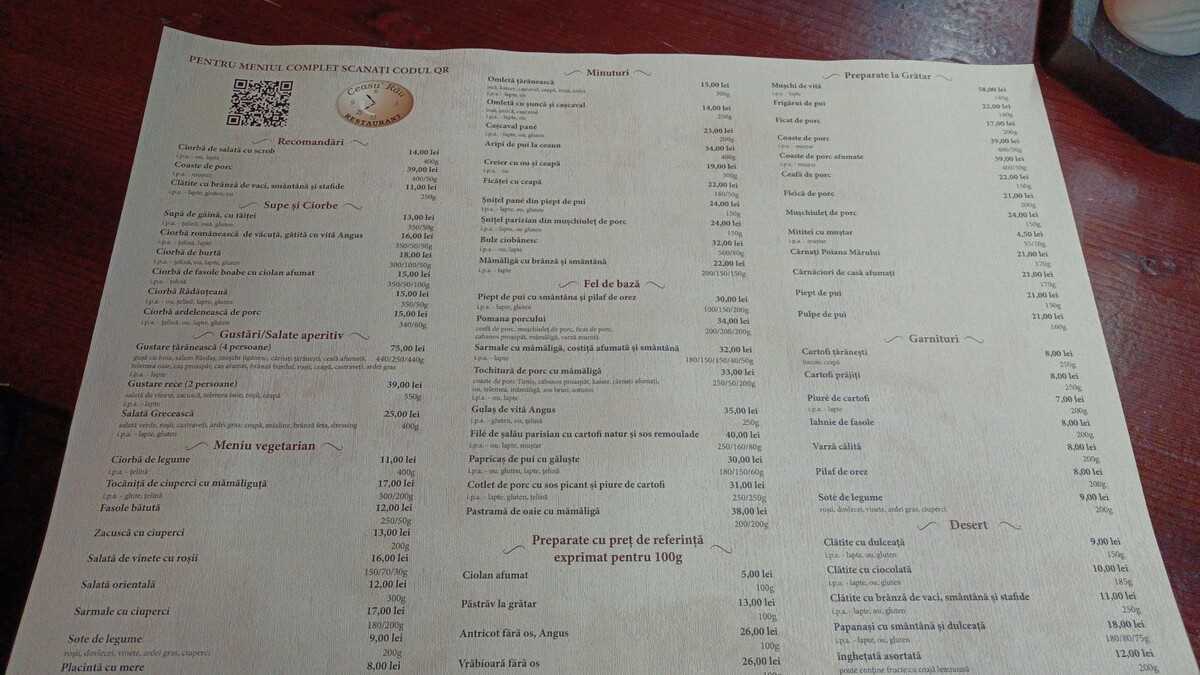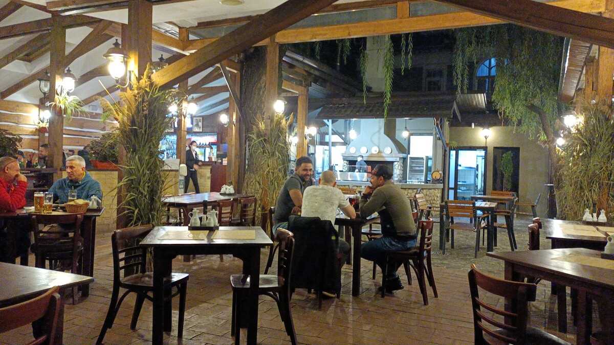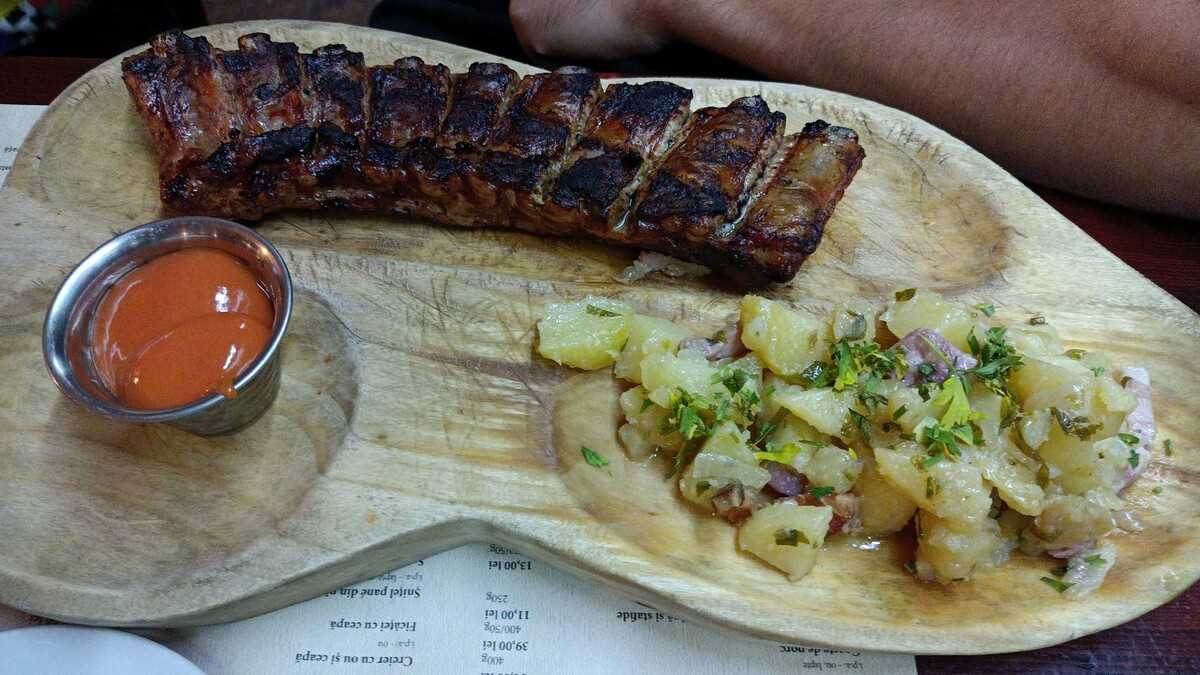 A durat ceva pînă să ni se onoreze comanda. Cînd m-am întors de la toaleta renovată în stil rustic, cu intrare pe lîngă locul de joacă pentru copii, spre care plecasem după niște discuții cvasi-interminabile la pălinca de Bran și berea craft Bîrlog de la antreuri, tot nu venise. Dar și cînd a venit… Surpriză: pîine cu consistență și gust de carton, zacuscă de casă, parțial amestecată cu din cea ordinară, de trei lei, în supermarket, iahnie insipidă, lipsită de condimentele cerute de rețetă. Am mîncat, dar gura mea nu numai că n-a fost impresionată, dar a plîns salivă foarte dezamăgită.