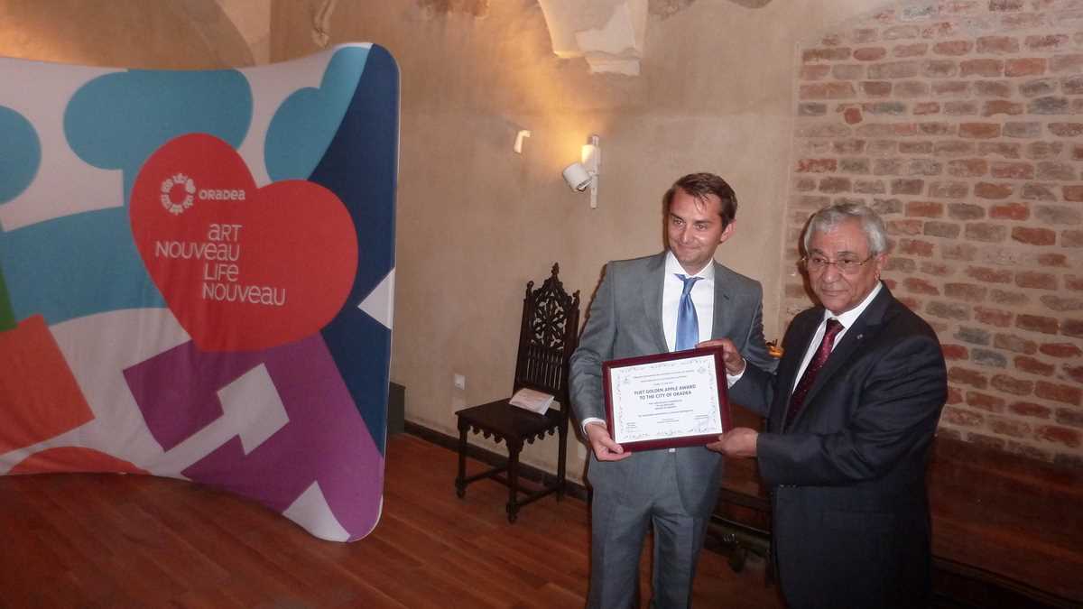 La inițiativa filialei FIJET România, care a propus această premiere și a oferit sprijin în întocmirea dosarului de candidatură prezentat la congresul din decembrie 2018 din Maroc, președintele FIJET, Tijani Haddad, a înmînat reprezentantului municipiului Oradea, Mihai Jurca, Mărul de Aur, în cadrul unei ceremonii care s-a desfășurat sîmbătă, 15 iunie, la ora 12, în Cetatea Oradea.