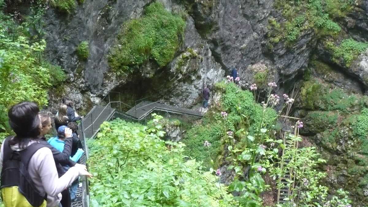 3) Treci prin poarta cu grilaj rotitor și te pregătești de o scurtă călătorie spre centrul Pămîntului (intrarea în Ghețarul de la Scărișoara se face printr-un aven frate cu o prăpastie) – ai de coborît o scărișoară cu trepte parțial metalice, parțial din lemn, ancorată în spirală de pereții acoperiți cu vegetație sălbatică ai avenului, pînă la cota minus 50 de metri. Cu fiecare pas în adînc, se face treptat iarnă: temperatura scade, întîi ușor, apoi brusc, pînă aproape de ambianța unei lăzi frigorifice.