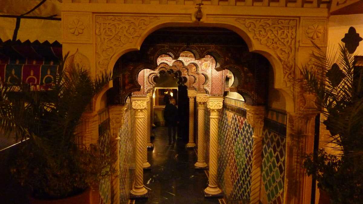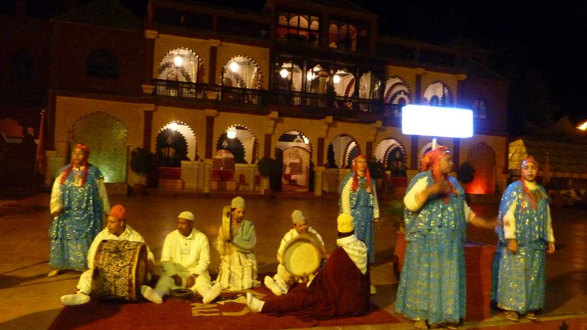 Palatul califului din O mie și una de nopți. Asta-i senzația cînd privești din exterior complexul turistic cu ziduri de cetate de a cărui poartă, odată trecut, ajungi direct în basmele arabe. Cele cu peștera lui Aladdin și hoții lui Ali Baba, atmosferă recreată atît de decor (imensa cobră stilizată încastrată într-o porțiune de perete și perfect luminată îți dă fiori), cît și de coloana sonoră – zornăitul de tobe al ansamblurilor folclorice din diferite regiuni marocane prezente aici, fiecare cu cîntecul, dansul și portul specific.