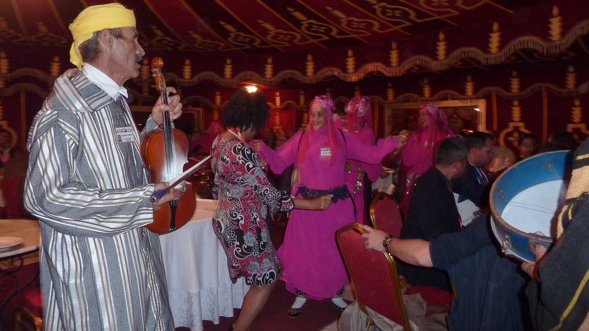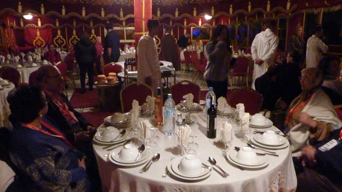 N-au fost însă nici caviar, nici șampanie, pe masa rotundă din ultimul cort, undeva pe la tribuna a doua, la care s-a așezat numeroasa echipă* FIJET a României: tajine de miel cu prune, cous-cous și vin marocan Ksar de Meknes, servite pe ritmuri tribale de folcloriștii care ne întîmpinaseră.