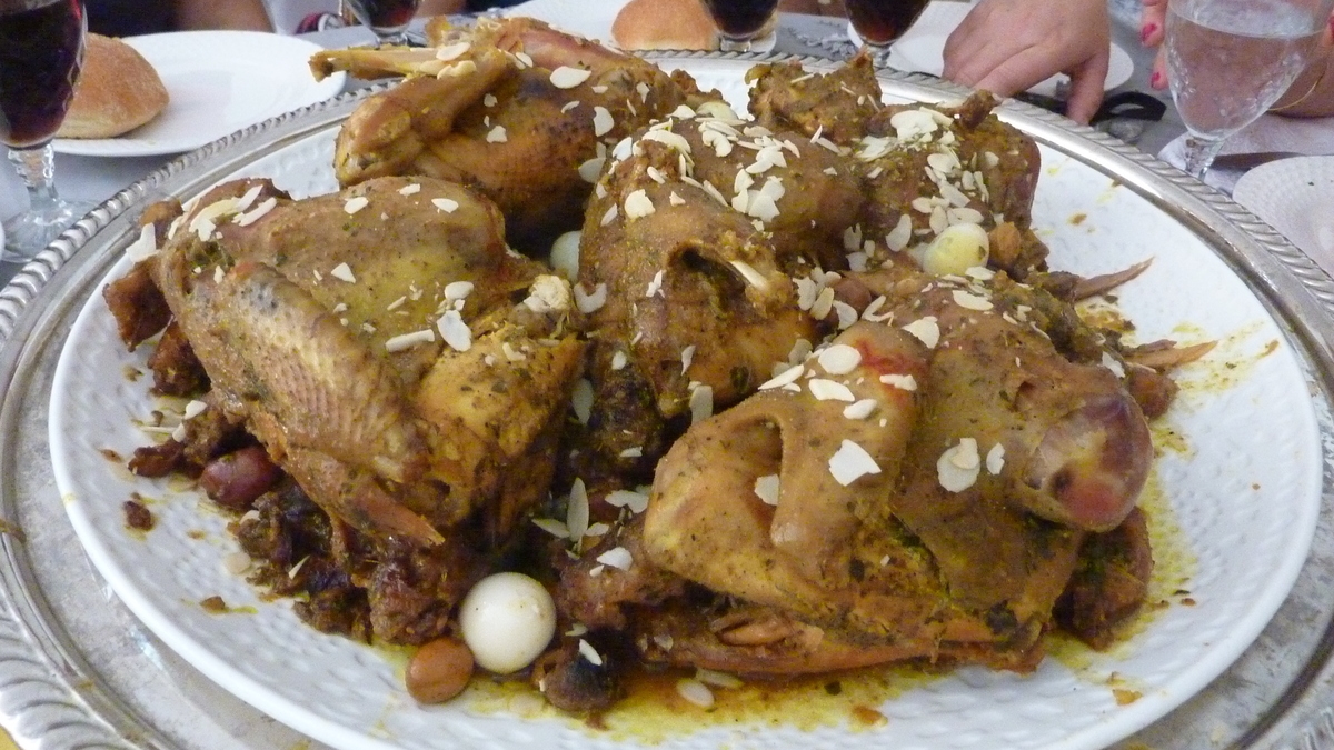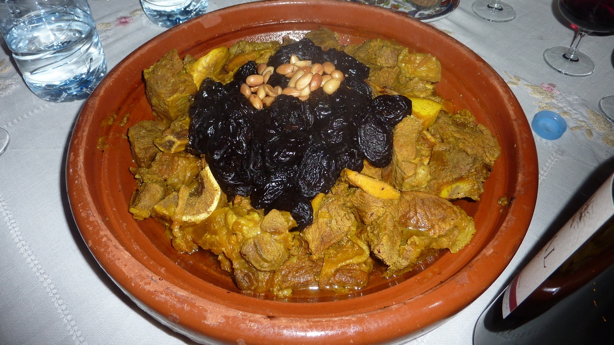 După două săptămîni în Maroc te saturi de tajine. Nu numai să-l mănînci, dar și să-l vezi. Vorbim, desigur, despre felul principal al mesei zilnice a magrebianului, carnea de pui, curcan, miel, ied, iepure sau vită fiartă în sucul propriu, îmbogățit cu sevele legumelor și savoarea mirodeniilor adăugate în sauna în care se perpelesc lent împreună, nu de vasul din lut cu același nume în care se gătesc aproape toate rețetele bucătăriei locale.