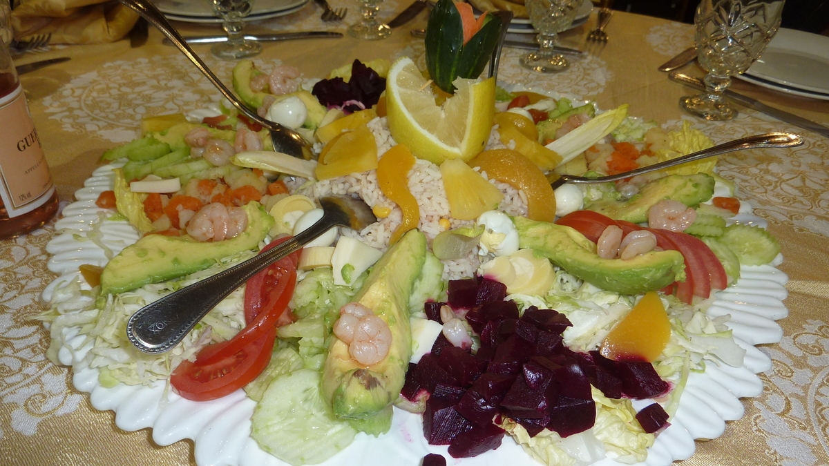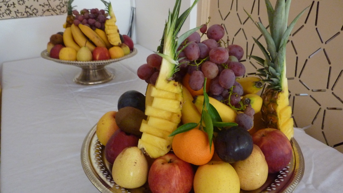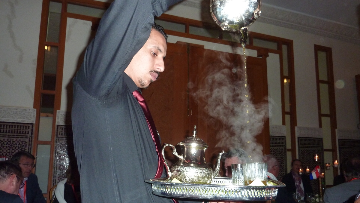 Am avut ocazia să experimentez cam toată gama de oferte de luat masa în expediția marocană, de la micul dejun de hostel al călătoriilor mele de dinainte și de după congresul jurnaliștilor de turism FIJET de la Marrakesh, la bufetele hotelurilor de cinci stele în care am fost cazați sau meniul restaurantelor în care gazdele ne-au invitat să mîncăm pe parcursul excursiei post-congres prin fostele capitale imperiale Fez și Meknès cu destinație finală Rabat, actuala capitală. Adică și breakfast-ul sumar compus din cîteva felii de pîine, un cubuleț de unt, unul de gem și o ceașcă cu ceai de mentă de la Corner Hostel, din medina Marrakesh-ului, cartierul-bazar-labirint cu foială permanentă, și abundența vitrinelor calde sau reci cu specialități marocane sau internaționale ale complexului turistic de la marginea orașului (și a deșertului) Club Dar Atlas.