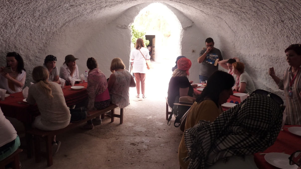 Excursia cu autocarul în Sahara tunisiană ne-a prilejuit, în prima zi, o experiență rară: prînzul berber, tradițional, din Matmata, localitate-oază la marginea deșertului. La hotelul cu restaurant Marhala, săpat în pămînt, ca toate locuințele troglodite din zonă, pentru un pic de răcoare, comparativ cu dogoarea soarelui de-afară. Un local foarte modest, dar curat, cu pereți orbi ca de peșteră, mese acoperite cu mușama și băncuțe învelite în preșuri ca la parastasele de la țară. Și, exact ca la pomană, meniu fix: cîte un brik, însoţit de o salată de castraveți, varză, roșii, o porție de cuș-cuș, cu pui, cartofi și morcovi, fierți, împreună, ca la saună (în marqa, vasul din lut corespondent tajine-ului marocan), și niște prăjiturele cu gem de curmale. Mîncarea a fost inclusă în prețul excursiei, băuturile le primeai, contra cost, la un tarif mai mult decît rezonabil, ținînd cont de locul în care te aflai: o bere locală Celtia la 0,33 l – 4 TND (un dinar tunisian e aproximativ 1,50 lei), o cola – 2 dinari. Dacă voiai apă, cred că era mai scumpă.