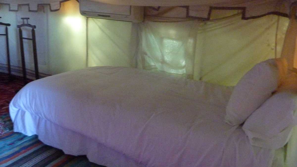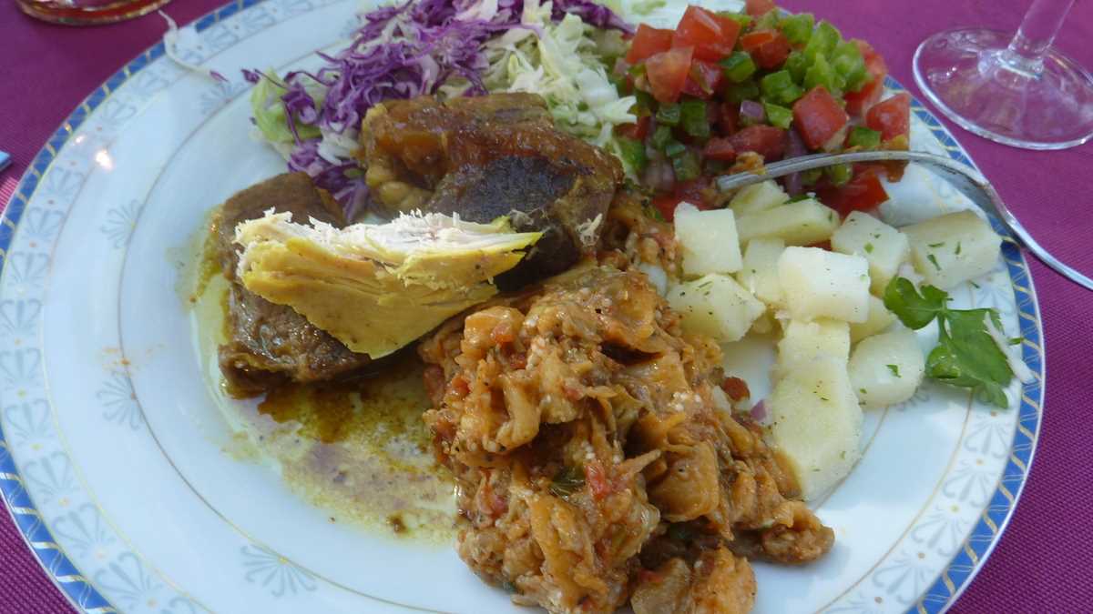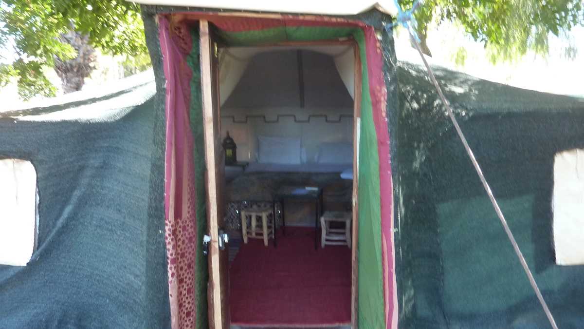 Deci, cum ar veni, La Stînă, o stînă ceva mai deosebită, cu doi militari înarmați la poartă (nu știu dacă postați acolo doar pentru noi, jurnaliștii de turism veniți din douăzeci și ceva de țări de pe toate continentele, sau permanent). Practic, în contrast cu tot ce se află în afara gardurilor complexului, o oază turistică îngropată între agave și eucalipți care oferă și cazare în corturile-apartament atent amenajate, și activități recreative, la piscină sau pe terenurile de sport, și mîncare, după cum aveam să gustăm: special pentru noi, se amenajase un fel de zonă de picnic, cu mese întinse pe iarbă, sub copaci.