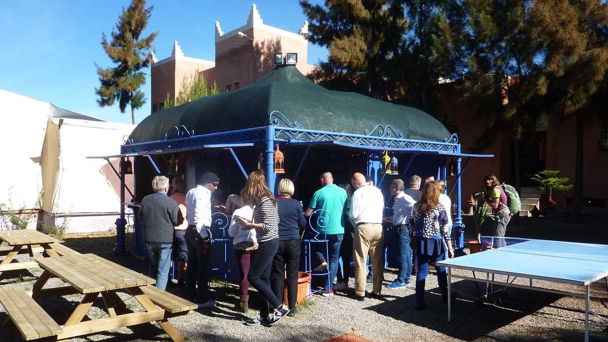 Început de decembrie marocan foarte plăcut, 20° Celsius și senin (vreme comparabilă cu ce-avem acum în România, la jumătatea lui mai). Coboram cu colegii de FIJET din autocarele excursiei în Ourika Valley, pentru un prînz ad-hoc, la vreo 50-60 kilometri de Marrakesh, la capătul unui drum de țară și al unei pădurici de măslini, în La Bergerie. Undeva în Marocul profund, unde oile au înlocuit corăbiile deșertului și Munții Atlas se profilează în zare, peste stepa plină cu ciulini și cactuși.