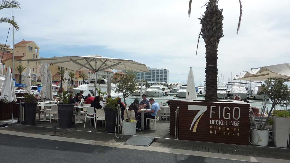 Inclusiv pentru noi, cei opt membri ai expediției de presă în Algarve, care navigam ușor în derivă, într-o vineri după-amiază, pe străduța marinei: ne-am așezat la o masă de pe 7 Figo’s Decklounge; ne-a servit o chelneriță cam absentă, ajutată de un coleg permanent zîmbăreț; s-a vorbit mult și interesant; s-a mîncat (fripturi, pește și creveți cu un sos de o culoare care nu poate fi descrisă dacă sînteți la masă) și s-a băut (bere, sangria, vin alb), evident, ceva mai scump decît alături, la fast-food, dar nu știu dacă neapărat mai bun.