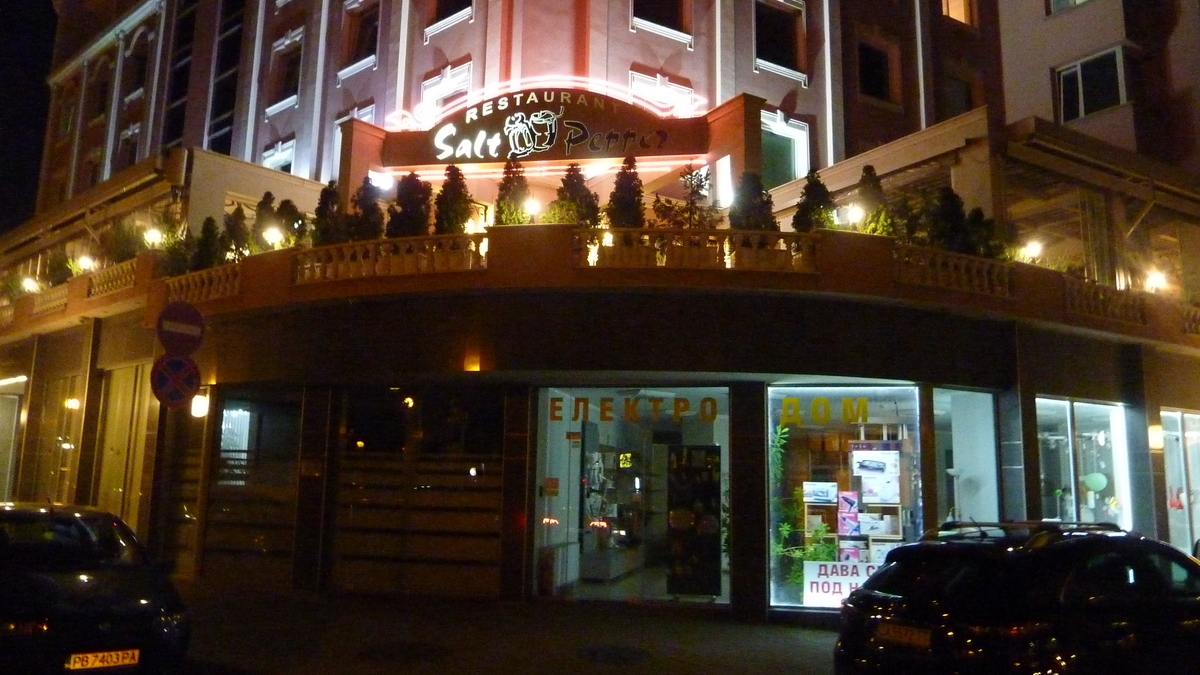 Salt and Pepper e chiar în centru, pe pietonala cu stadion roman la subsol, în capăt. Un loc cu pretenții și meniu gourmet, chelneri reținuți și acvariu cu pești exotici în peisaj. Cadru prea puțin impresionant pentru rockerii macedoneni de la televiziunea din Skopje, neamțul Götze și italiencele de la La Stampa, Noemi și Barbara, cu care am stat la masă. Și absolut deloc impresionant pentru vecinul de farfurie, Robert, tatuatul praghez angajat al unei agenții de turism britanice cu care am continuat experiența alcoolică, înapoi la hotel, povestind, vreo jumătate de noapte, la niște beri Kamenitza și-un coniac albanez.
