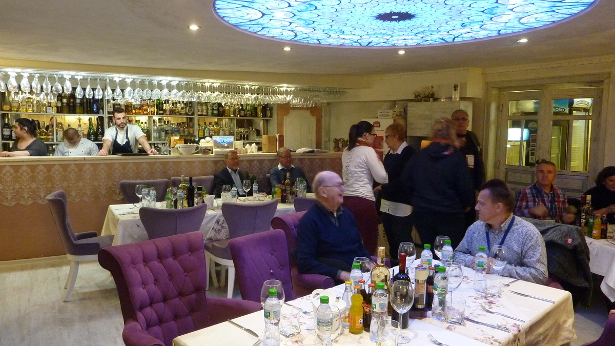 La Marbella, o cîrciumă cu specific mediteranean de pe malul canalului artificial deviat din rîul Marița, ni s-a servit o cină dansantă. Terasa închisă în jurul unui copac integrat în decorul interior, axat tematic pe hărți maritime și machete de corăbii, care are și niște papagali într-o colivie postată între chitările de pe peretele holului spre budă, te duce cu gîndul la pirați. Reprezentați nu numai vizual, dar și olfactiv-gustativ, de romul servit între felurile lejere, bazate pe crudități, tapas și păstrăv la grătar. Seara petrecută în compania colegilor din FIJET România, Florin și Olga, a bulgăroaicelor din comitetul de organizare și a lui Voljen din FIJET Croația, un gurmand cu voce de bariton, a avut momentul culminant cînd croatul, activat de cele cîteva pahare consumate, a trecut la microfon și ne-a cîntat, allegro con forte, O Sole Mio.