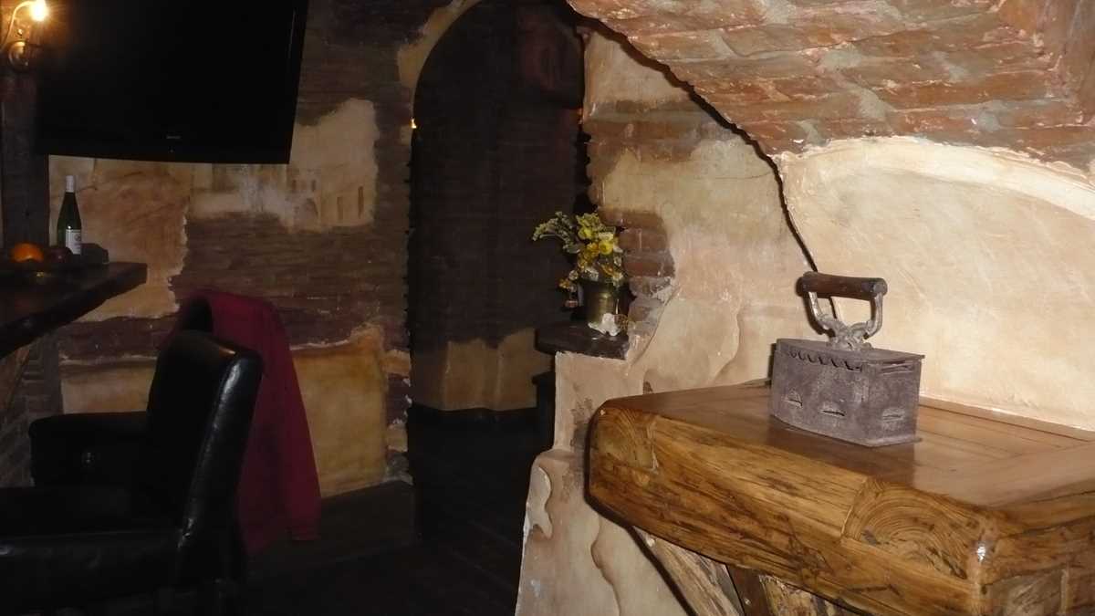 Parterul restaurantului era rezervat pentru un eveniment, așa că am coborît în salonul de la subsol (apropo, o idee foarte bună, asta de a te retrage la întuneric și răcoare, vara). Spațiul, un fel de cramă lumina discret, cu ziduri, arcade și coloane din cărămidă, mobilier din lemn masiv în culori întunecate și chestii vechi pe la colțuri, are o ambianță cu iz retro-gotic care amintește de fostul Jack, ăla de pe Griviței, chiar dacă, în loc de chitări și postere cu trupe, pe pereți sînt atîrnate funii de usturoi, legături de ardei iuți sau rafturi cu rudele lor ceva mai îndepărtate, murăturile în borcan. Da, un fel de fostul Jack, dar nu de rockăreală și bețivăneală, ci de stat la taclale și de mîncat cu prietenii, într-o companie plăcută.
