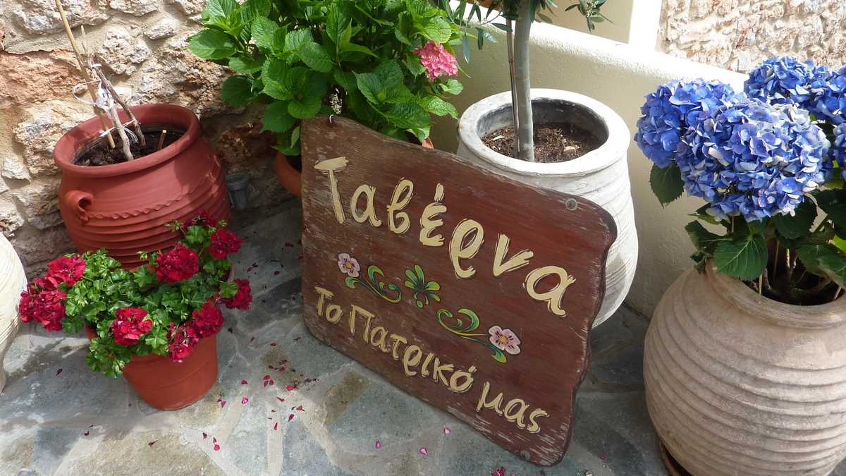 Eram în Delphi, la vizitat ruine antice cu gașca de jurnaliști a infotrip-ului Atena – Kamena Vourla – Skiathos de anul trecut, cînd limbile ceasului care bătea ora unui prînz întîrziat se transformaseră deja în linguri și furculițe. Am parcat, deci, unde am găsit o gaură între mașinile înșirate de-a lungul străduței principale cu taverne și pensiuni, niște viluțe de maximum două etaje cu balcoane deasupra trotuarelor, și ne-am plimbat foamea spre o tavernă aleasă după criteriul “Cea care arată mai bine“, în care să mîncăm ceva înainte de pelerinajul la templul lui Apollo.