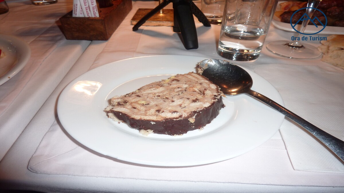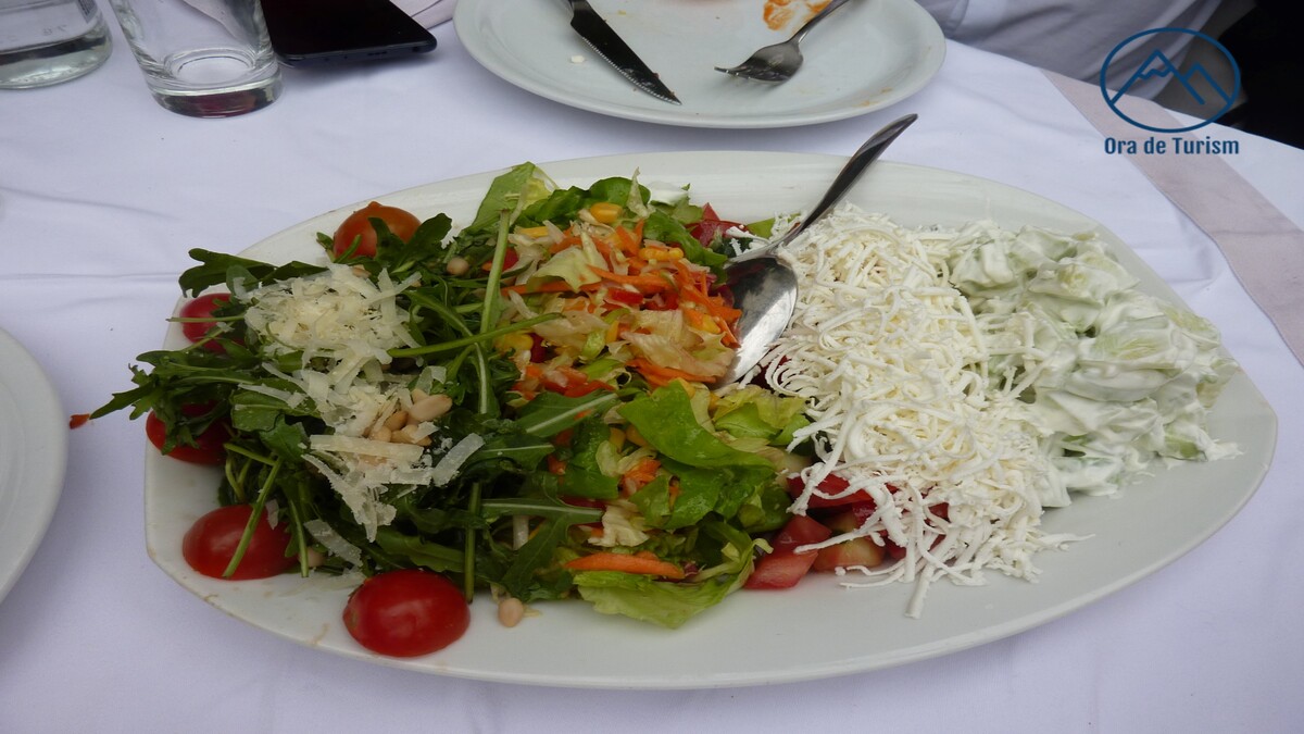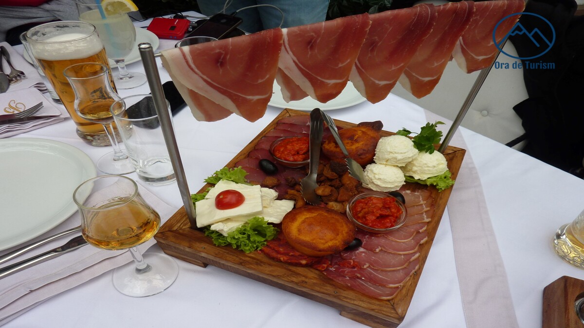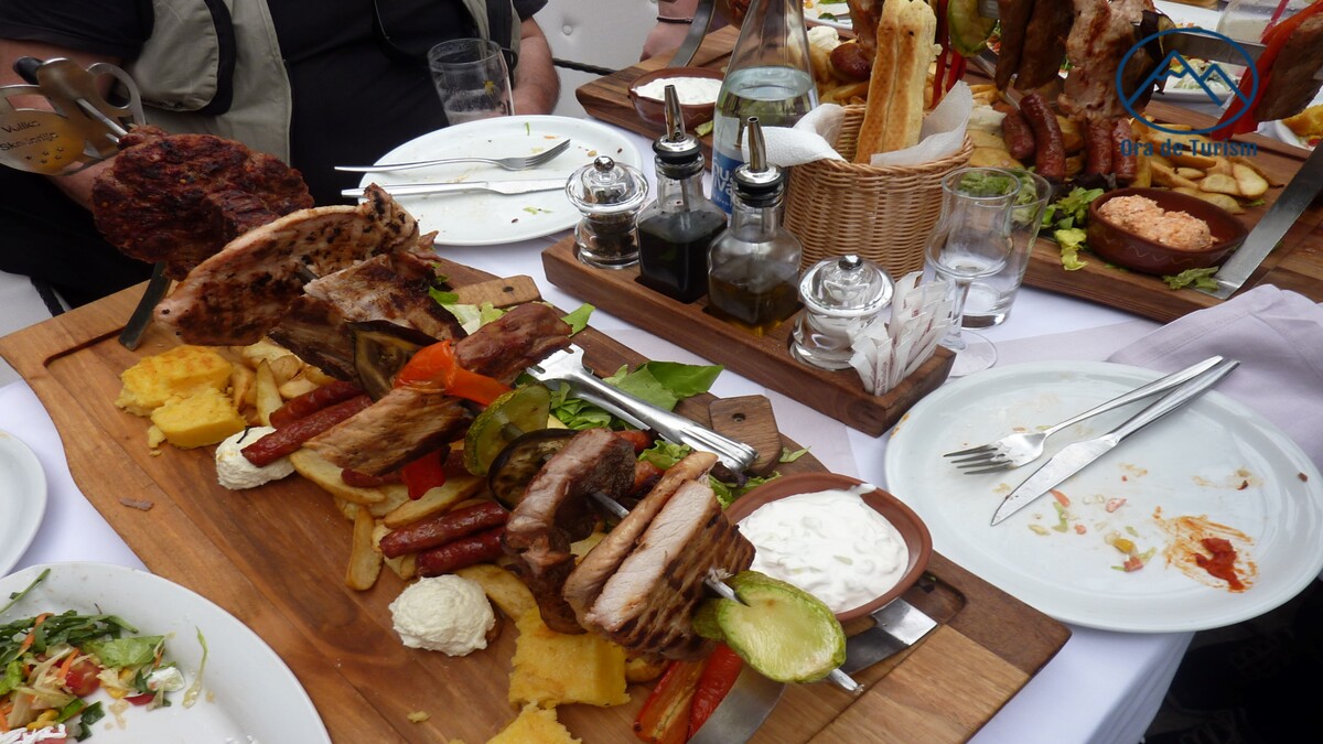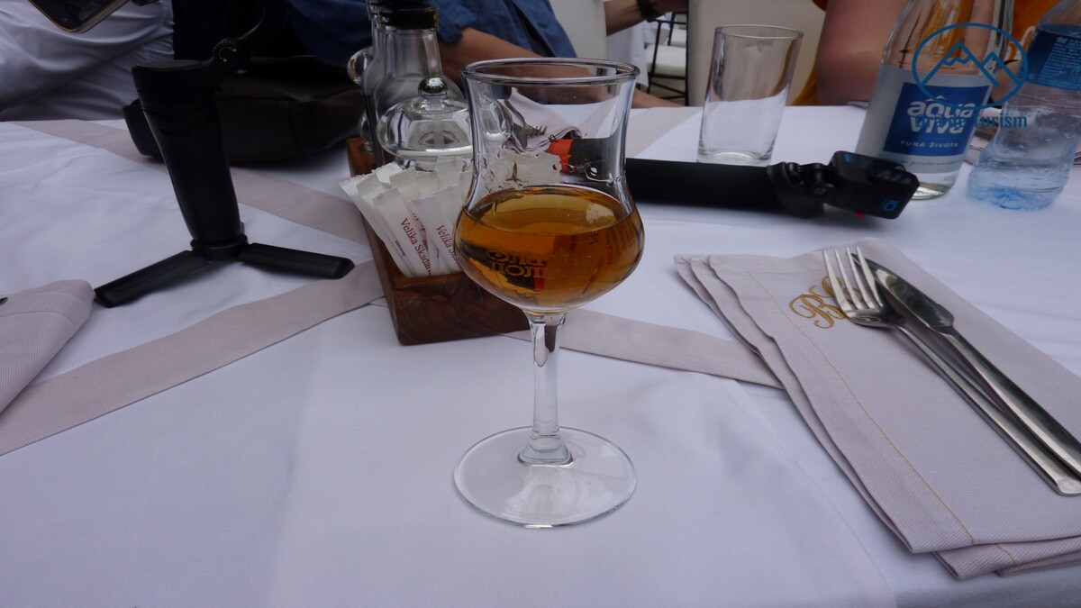 După ce ne-am așezat într-un colț, lîngă gard, într-un fel de separeu semiprivat delimitat oarecum de o perdea de vegetație de curtea casei vechi cu iederă pe fațadă și fîntînă arteziană între mese, l-am cunoscut pe Dejan, ospătarul old school care a adus meniurile și ne-a întrebat pe un ton profesional cu ce am dori să fim serviți. Nu doream ceva anume; din interacțiunea cu el, am realizat că-i suficient de experimentat ca să mergem pe mîna sa, așa că l-am lăsat să ne aducă ce are mai tradițional și mai “trebuie neapărat să guști“ în bucătărie și în bar. Și Dejan nu ne-a dezamăgit. A venit mai întîi cu niște rakija, la aperitivele pe platou din lemn (păstrămuri, brînzeturi, jumări) însoțite de pîinea-baghetă, sub formă de sticks-uri ceva mai mari. Apoi s-a prezentat cu piesa de rezistență a meniului, porcăriile la grătar înfipte spectaculos în niște săbii de mare efect, mai ales la fotografii de Facebook și Instagram ai grupului. De la festin n-au lipsit, desigur, băuturile locale, berea Jelen sau vinul alb sec (două soiuri degustate personal, ambele chiar OK).