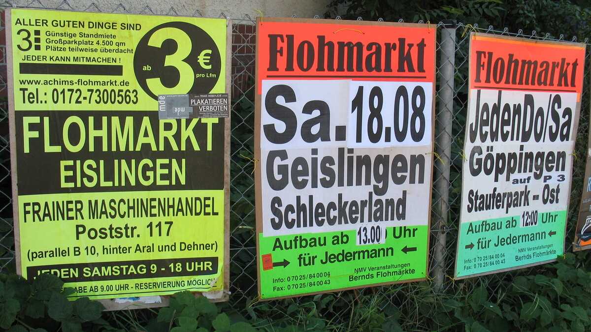 Dacă vrei să vezi lume mai multă la un loc, du-te sîmbăta dimineaţă în flohmarkt, replica tîrgului de garaj al americanilor. Aici, vînzătorii se adună într-o parcare de supermarket, pun pe taraba de lîngă maşină o marfă foarte diversă, la prețuri modice, și așteaptă clienți. Ce au în ofertă? Păi, cam de ce se mai împiedică omul prin casă: de la schiurile cu care şi-a rupt picioarele Hans în luna de miere și jucăriile neupgradabile ale juniorului pînă la mileurile lu’ mama mare şi fotografiile lu’ bunicu’.