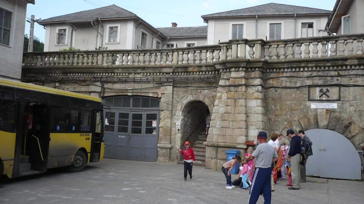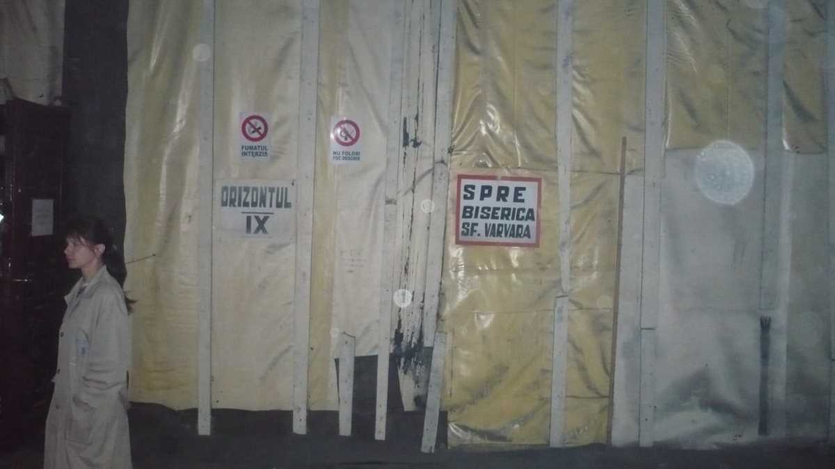 Spre regretul amatorilor de senzații tari, gen mineriadă, accesul turiștilor în mină nu se face după echiparea regulamentară, cu salopetă, cască, lămpaș – opțional, bîte –, și îmbarcarea în vagonete (să recunoaștem, ar fi fost o experiență foarte interesantă), ci mult mai banal, în hainele cu care a venit fiecare de-acasă, într-un microbuz clasic, ca pentru o cursă locală de navetiști. După o coborîre de vreo zece minute, cam trei kilometri de serpentine în pantă, într-o beznă de film de groază, spartă din cînd în cînd de niște lumini anemice, se ajunge la capătul traseului: stația Orizontul IX, cota 240 m adîncime.
