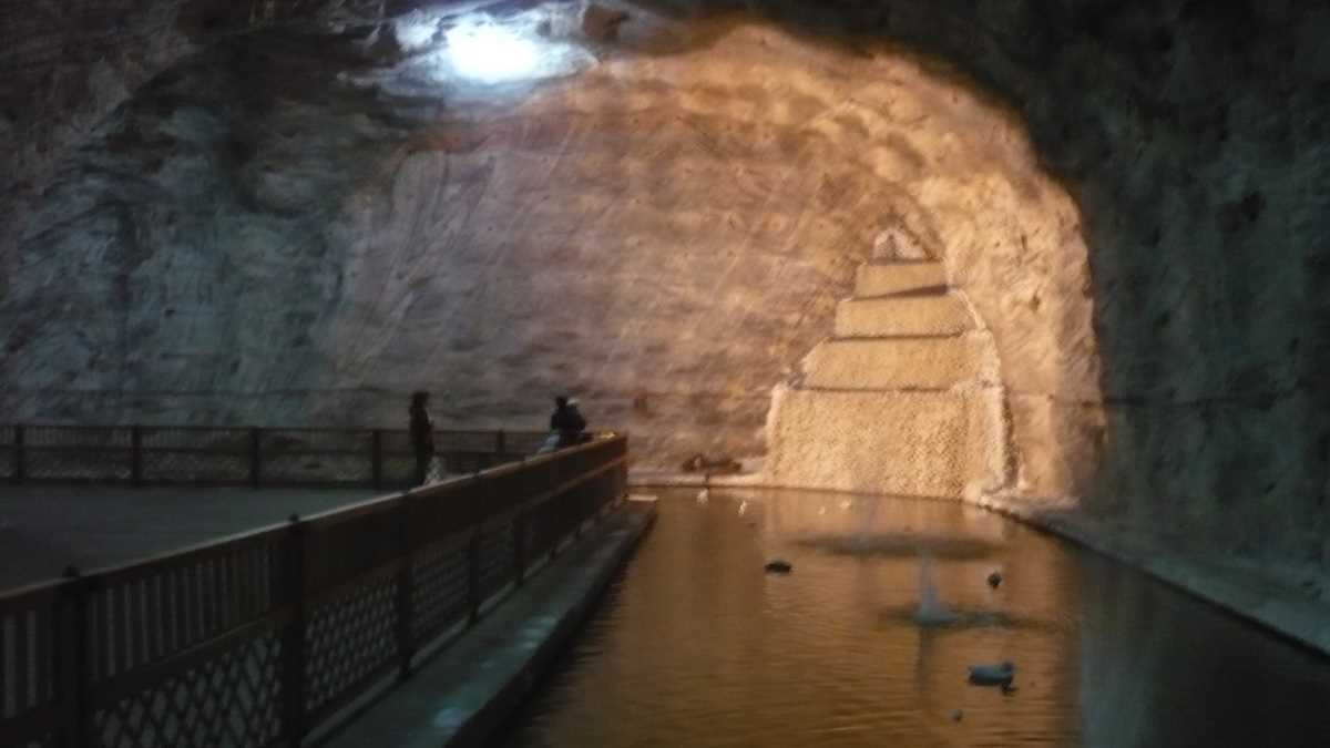 Intrînd pe uriașa poartă metalică, scapi rapid de noxele din plămîni aduse de sus, înlocuindu-le cu aerul sărat (care, zic specialiștii, are proprietăți curative în cazuri de astm și bronșită) al galeriilor: un fel de săli de sport înalte de opt metri, în care temperatura e constantă tot timpul anului (12-13 C). Vei descoperi aici un cartier subteran al orașului, cu totul și cu totul din sare: biserică, lac şi cascadă, muzeu, magazin de suveniruri, terenuri de fotbal/baschet/volei şi spaţii de joacă pentru clienți de toate vîrstele (de la tobogane gonflabile și jocuri electronice la mese de ping-pong, biliard și fussbal).