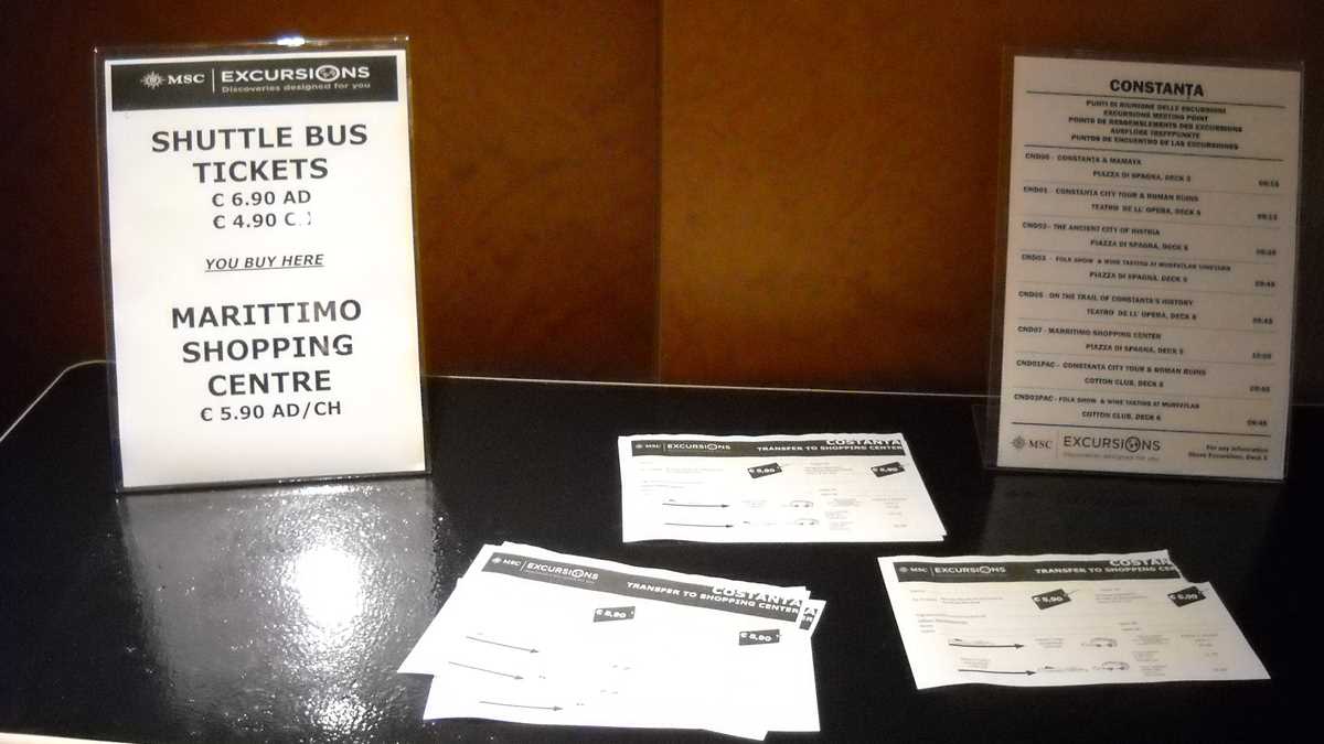 Vasul a ancorat doar pentru o zi la Constanța (o să-l găsiți aici pînă în septembrie, în fiecare a doua sîmbătă din lună, între orele 9 și 18), iar pasagerii dornici de o plimbare prin oraș au făcut schimb de locuri cu românii amatori de una la bord. Spre deosebire de grupul nostru, care a făcut doar o croazieră imaginară printre cargoboturile și macaralele portului, vreo alți 60 de conaționali, care ne-au însoțit la urcare, n-au mai coborît împreună cu noi, la 3,30 p.m., ci au rămas pe MSC Opera pentru un circuit de două săptămîni pe traseul Soci – Istanbul – Mykonos – Santorini – Kefalonia – Dubrovnik – Veneția – Bari – Atena (Pireu) – Constanța. Ca idee, pentru cei interesați de cît au plătit oamenii ăștia ca să ajungă (și) în orașul în care s-a filmat recent un episod al celebrului serial de reclame Game of Shepherds, tarifele încep de la 859 de euro patul în cabină interioară standard, plus taxe portuare (150 de euro/persoană) și service charge (8,5 euro/zi).