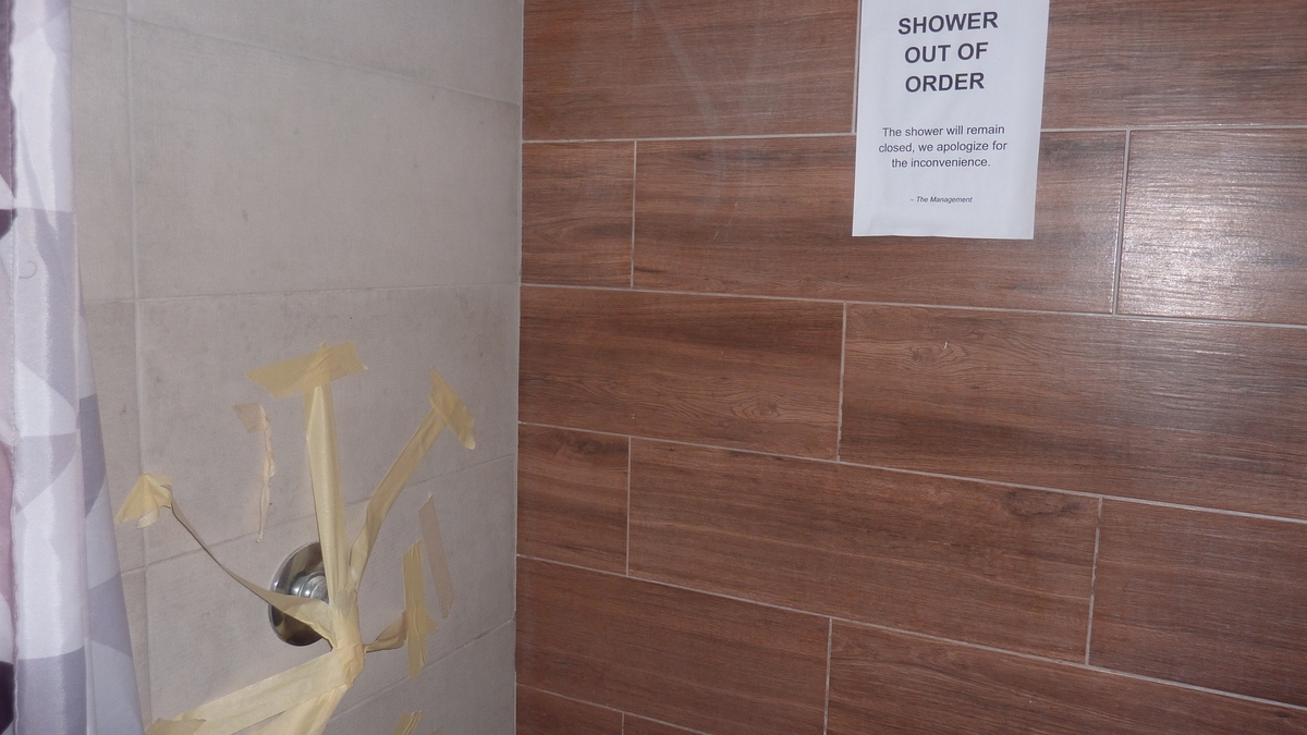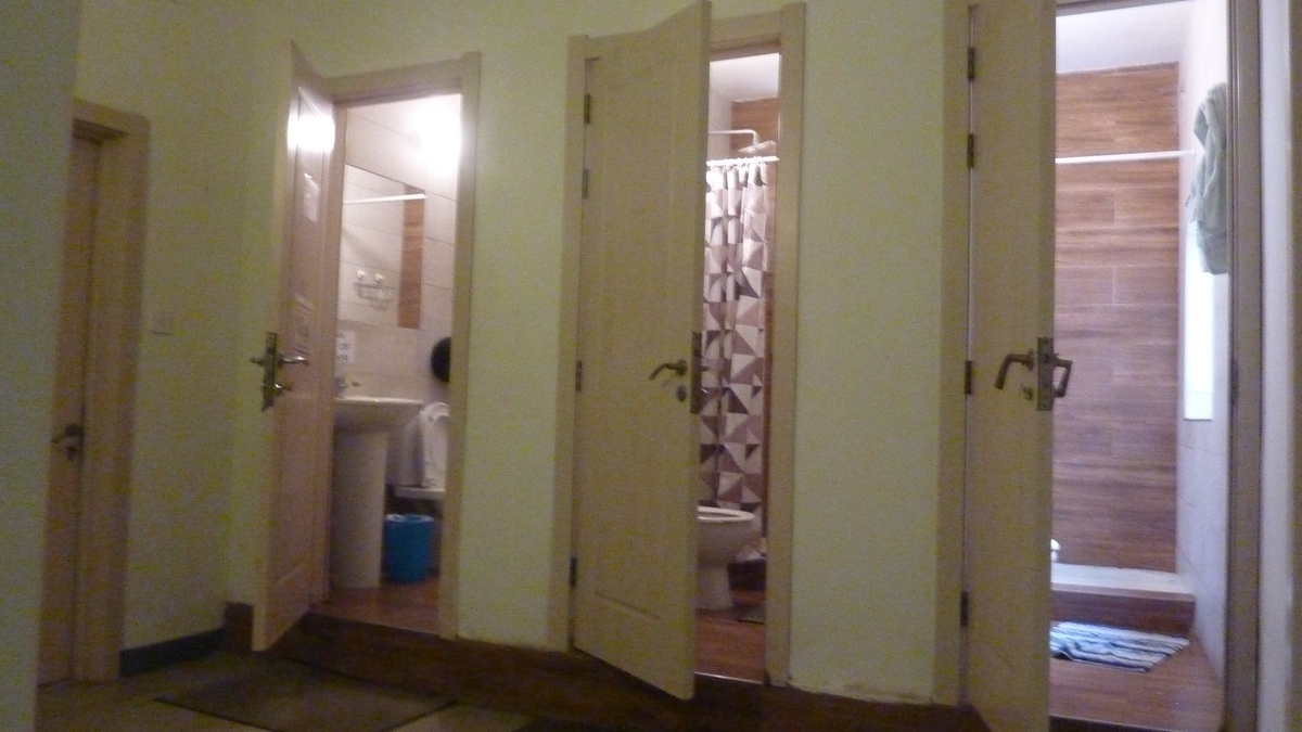 Dotările: …deși se laudă cu rating 8,3 pe booking.com, afișat cu mîndrie pe avizierul din recepție, nota asta e cam de mult old news, dac-o fi fost vreodată reală. Doar apă rece la duș (încălzirea cu panouri solare nu face față, mi-a explicat Jessica), uși care nu se închid decît parțial, toate chiuvetele din cele trei băi de pe palierul pe care am stat – dezafectate, net nefuncțional, bec lipsă la veioza de lîngă pat, pernă tare… și aș putea continua, în același registru defecțional. Deși personalul responsabil cu curățenia își dă silința (i-am văzut/auzit în exercițiul funcțiunii), impresia generală a igienizării nu depășește nivelul slin cu luciu. Oricît ai curăța o clădire veche, neupgradată încă la secolul XXI, tot e ca și cum n-ai fi făcut-o.