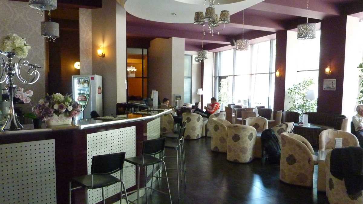 Ambianța: Înăuntru, europeană. Afară, profund românească: cum ieși din hotel, ambianța mioritică te lovește direct în retină. Întîi, dacă te uiți doar în sus, plăcut; la coborîrea privirii de pe pinii negri crescuți rebel în creasta Domogledului pe stațiunea tristă Băile Herculane, neplăcut. E adevărat, în ultimii ani s-au mai cîrpit cu ceva asfalt niște trotuare, dar impresia generală a clădirilor de patrimoniu care par abandonate și a podurilor peste Cerna cu terasament prăbușit și balustrade ruginite e de lucrări neîncepute. Sau neterminate. Intrarea în băile imperiale austriece este o experiență atît de deprimantă, încît ruina a ceea ce a fost odată spa-ul împăratului Franz Josef și al soției sale Sissi te bîntuie multă vreme.