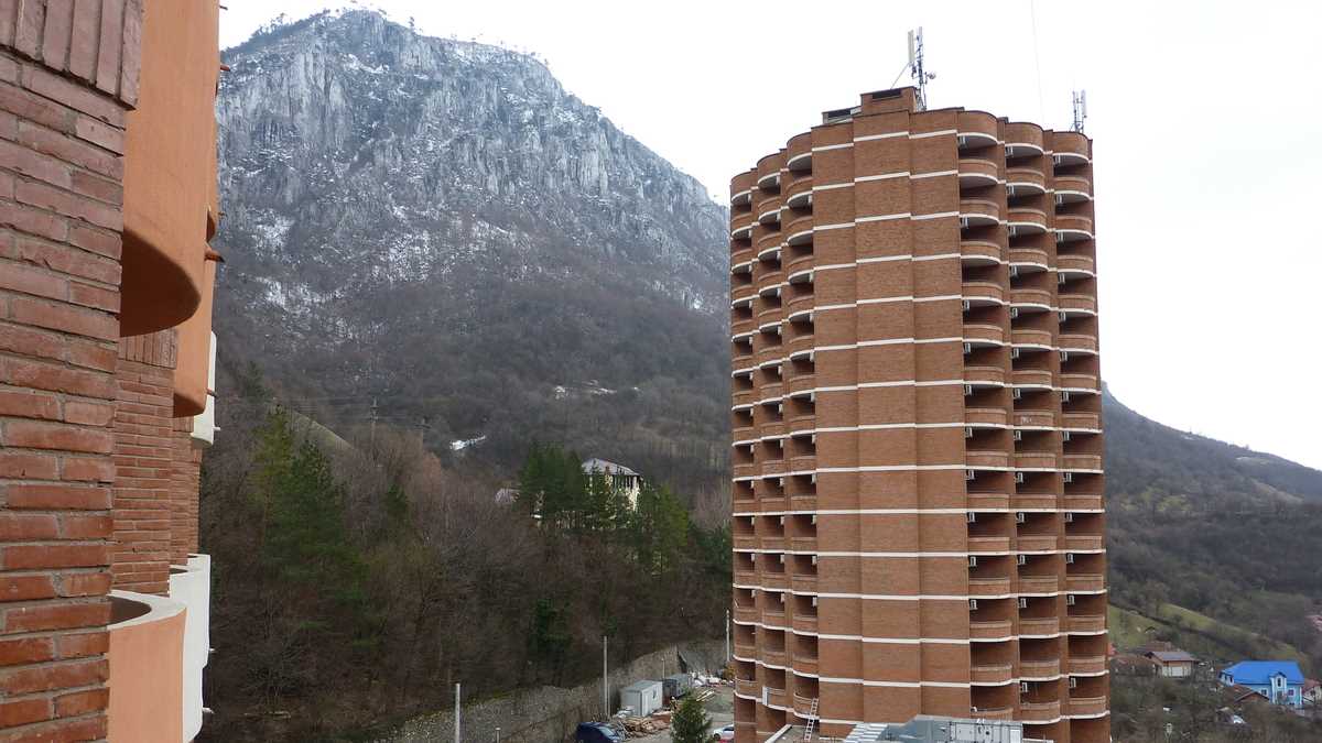 După conferință, împreună cu alți opt colegi, am preferat relaxării în piscina hotelului chemarea muntelui și am pornit într-o drumeție, pe traseul marcaj punct albastru care pleacă de la confluența Cernei cu Țăsna și urcă versantul împădurit printr-un peisaj sălbatic de frunze uscate îmblînzit de copaci înfloriți. Am trecut, lătrați de cîini, pe lîngă căpițe de fîn și case izolate unde o mamaie se opintea într-o roabă (“Cum se cheamă locul ăsta, tanti? – Cracul Teiului, maică!“) și am ajuns, după vreo două ore, la Dobraia, bisericuța din creastă al cărei mini-cimitir de patru morminte se roagă, parcă, Masivului Godeanu desfășurat maiestuos în zare. Ei, da, ăsta spațiu de cazare la mare înălțime în care să-ți petreci eternitatea.