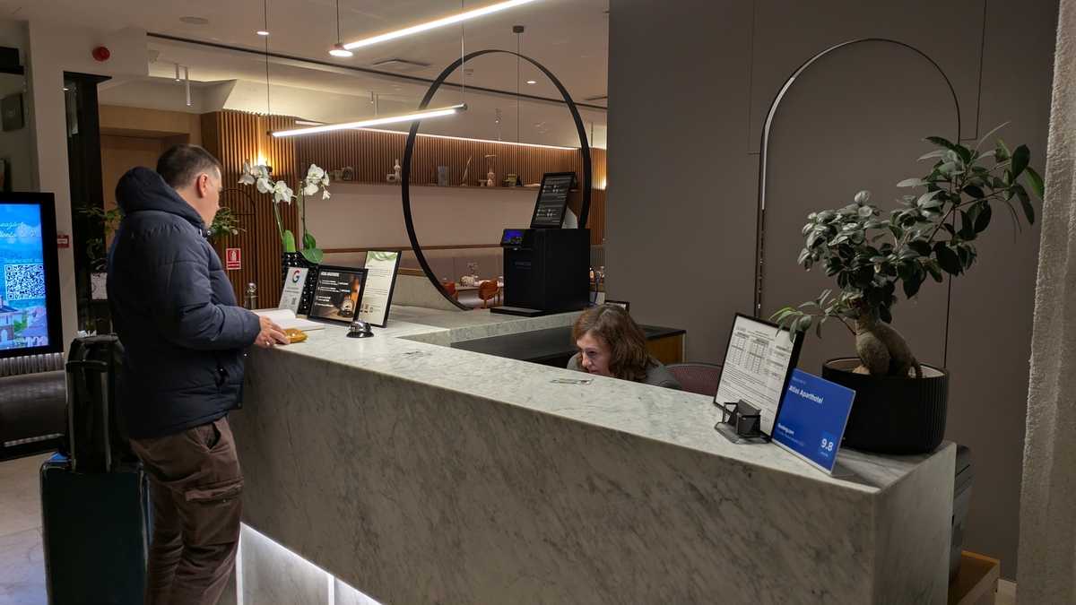 Locul: …situate ultracentral, vizavi de Ceahlăul, cel mai vechi hotel din Piatra Neamț (deschis în 1966), la doar cîteva sute de metri de Kilometrul Zero. Pardon, Edificiul Zero: biserica construită la porunca lui Ștefan cel Mare, acum mai bine de cinci secole, pe vremea cînd singurul spațiu de cazare al locului era cortul. Sau căruța. Revenind în prezent și la adresa acestui aparthotel de patru stele, un reper ar fi casa unde locuiește Il Viaggio, restaurantul celui mai cunoscut bucătar din oraș, moldo-italianul Chef Giovanni: chiar în stînga ei e un gang între clădiri spre parcarea sub- și supraterană din fața unui P+7 cu aspect modern, păzit de o barieră care permite accesul doar dacă îi arăți cardul. Nu orice card, cel primit de la recepție, după check-in. Care mai deschide, noaptea, și ușa glisantă de la intrarea principală, încuiată automat după ora 22, și, desigur, și pe cea metalică a apartamentului tău, oriunde s-ar afla în bloc. În ceea ce mă privește, luam liftul care oprea la mezaninul dintre etajele 4 și 5, deci mai coboram cîteva trepte pînă la 401.