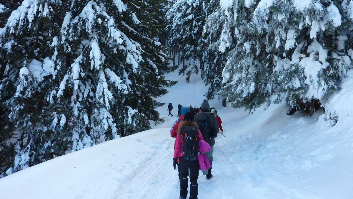 Locul: Am coborît din tren la Predeal și peronul s-a aglomerat brusc, cu 85 de oameni cu rucsac care căutau taxiuri spre intersecția șoselei Predeal-Pîrîul Rece cu drumul forestier care urcă la Forban. După regruparea în locul ăsta, în vreo o oră și ceva de ascensiune în monom, călcînd pe urmele celor din față, pe traseul marcaj punct roșu, ajungeam pe la prînz la Cabana Diham (1.320 m).