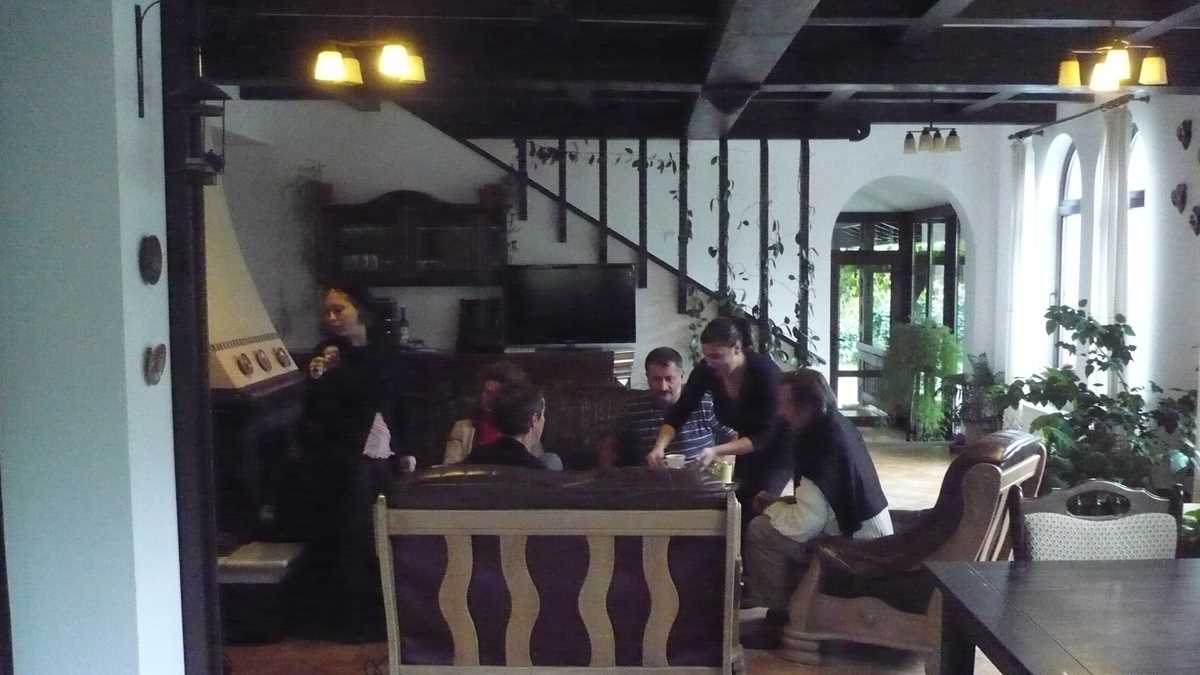 Ambianță: Să zicem că, mahmur încă după cheful din ajun, nu te-ai alăturat celor plecați să viziteze mănăstirile din zonă (Voroneț, Moldovița, Sucevița); acum, că strugurii și merele s-au retras prin sticle și borcane, au căzut frunzele și se așteaptă prima zăpadă, nu mai poți sta pe terasă sau în foișor, fără o haină mai groasă pe tine. Mai bine te tragi lîngă șemineu și te încălzești, pînă se pune masa, cu o cană de afinată.