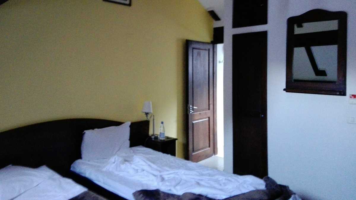 Dotările: La cît eram de obosit, tot ce m-a interesat în cea care mi-a fost repartizată (401, de la mansardă, la care se ajunge urcînd treptele unui gang plecat de la etajul 2), a fost dușul din baia mică, modern utilată, și unul dintre paturile twin.