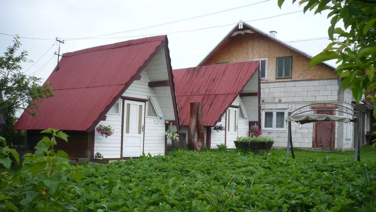 Dotări: Pe lîngă camerele pentru oaspeți din casa cu etaj, în curtea largă, populată cu iarbă, flori și pomi a pensiunii, au răsărit, pe bani europeni, cinci căsuțe de vacanță din lemn, cu clasificare trei margarete. Dotări interne: pat mare, matrimonial, fotoliu extensibil pentru cazarea unui copil (maximum, doi, mai mici), toaletă cu duș, televizor. Dotări externe: balansoare, foișor, grătar. Dotări interne separate: bucătărie complet utilată și sală de mese, într-o clădire anexă. Dotări externe sezoniere: biciclete, ponei, săniuțe.