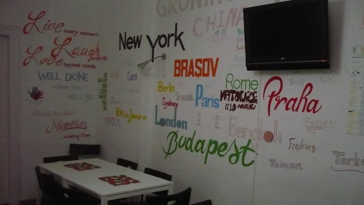 Ambianța: Hostel-ul ăsta superdecomandat, ale cărui camere (renovate, by the way, în stil „spațiu de prezentare mobilier tineret IKEA”) sînt împrăștiate în două corpuri de clădire, pe niveluri diferite, cu intrări separate, îți dă un ușor feeling de motel din filmele americane. Exceptînd holurile, singura zonă comună în care poți interacționa cu altcineva decît colegii de cameră este bucătăria de la etajul 2. Care, oricîți pereți desenați cu nume de orașe și expresii în diverse limbi ar avea, e tot o sală de mese în care se poate face doar o socializare de cantină.