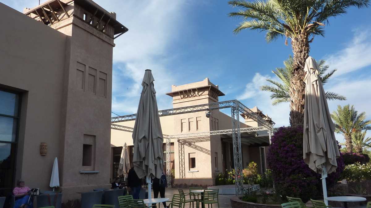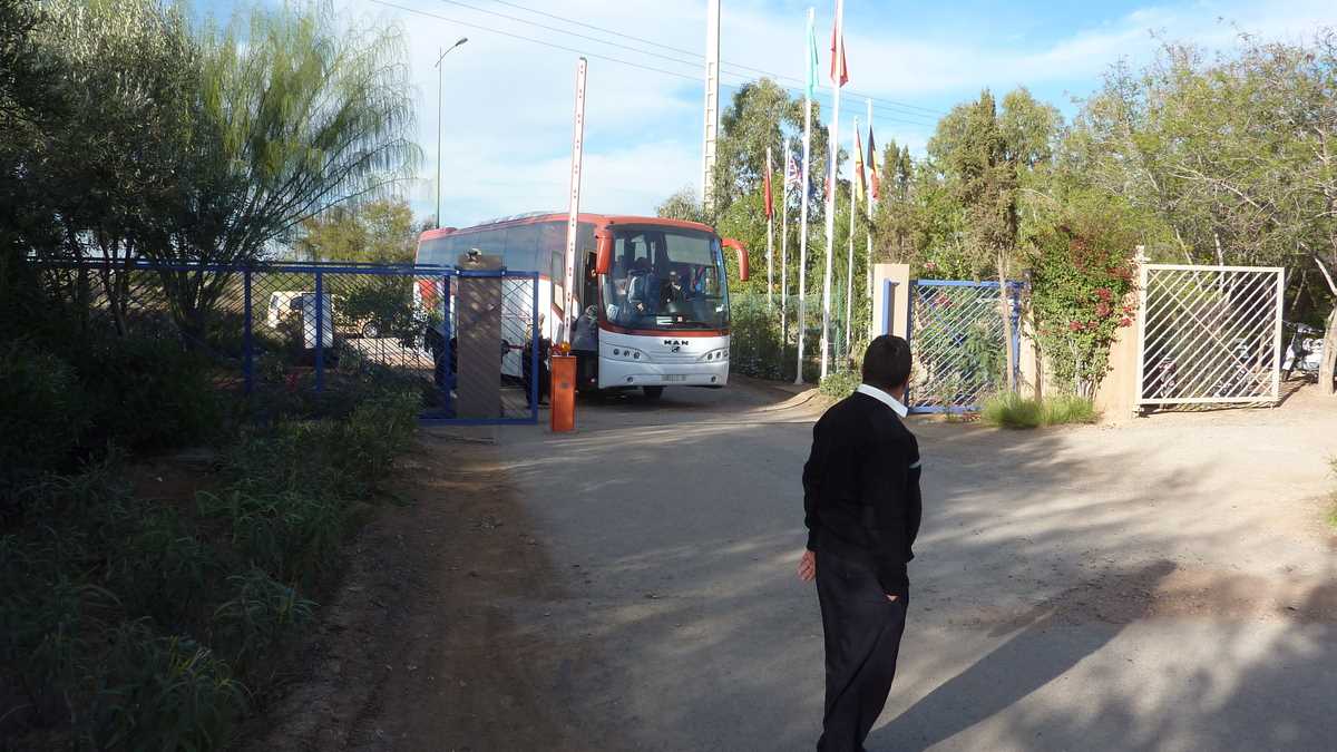 Locul: Am mers ceva cu van-ul cu care ne-au luat gazdele de la Marrakech Menara Airport pînă să intrăm în curtea hotelului, un complex de vilișoare P+1 cu covor roșu la intrare situat la vreo cîțiva kilometri în afara orașului, în direcție oarecum opusă aeroportului; ca idee de poziționare pe hartă, imaginați-vă o deplasare cam din extremitatea Ferentariului în Tei. Spun complex pentru că, la o tură a proprietății construite parcă într-o grădină botanică cu ziduri și garduri de pușcărie (cu majora deosebire că acestea nu-i împiedică pe infractori să iasă, ci să intre), am descoperit o mulțime de facilități și de dotări – spa, piscină, locuri de joacă pentru copii, terenuri de volei și tenis –, pe care, desigur, din motive de program superîncărcat, n-am mai apucat să le și testăm.