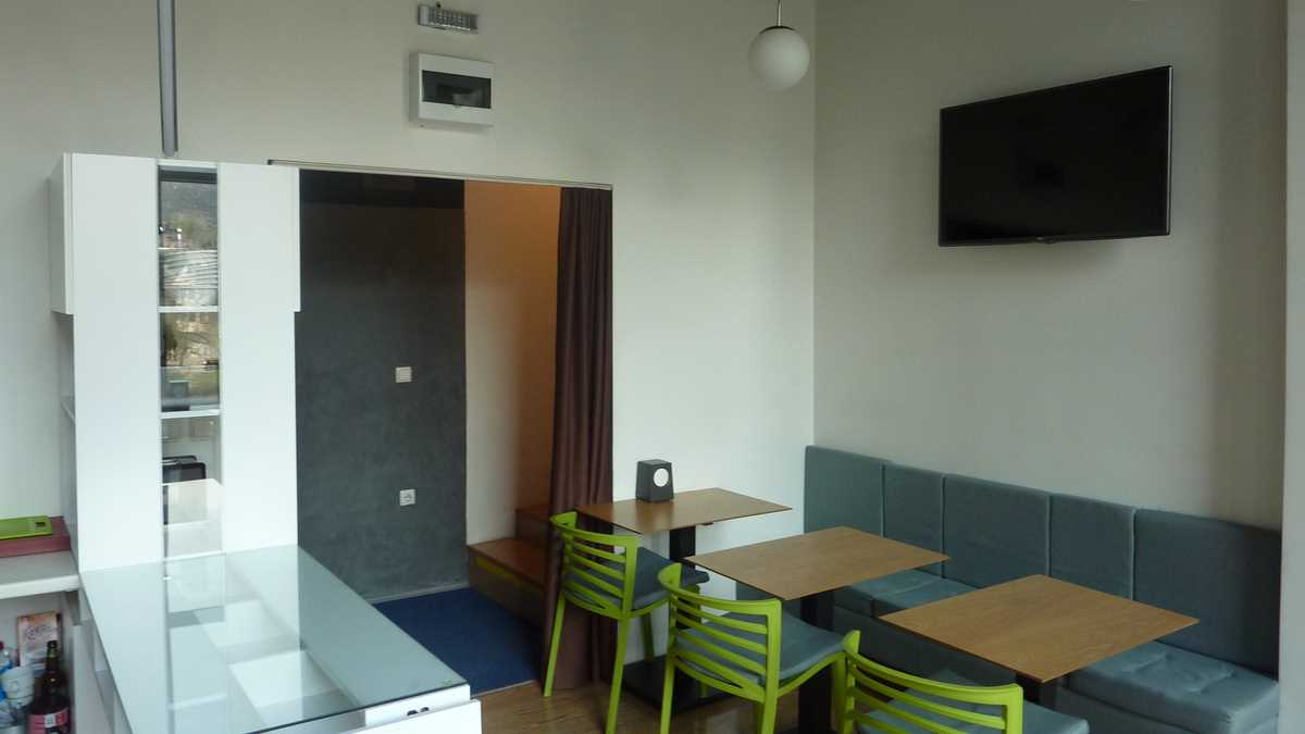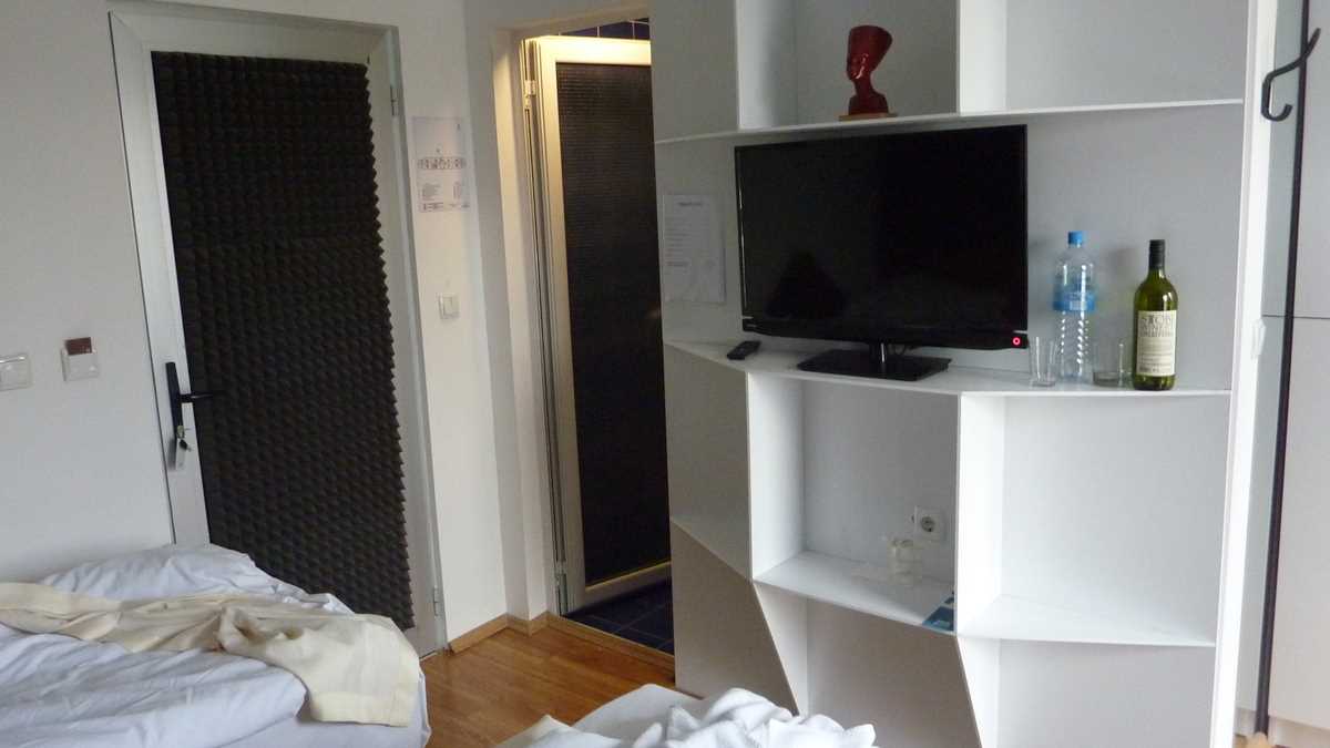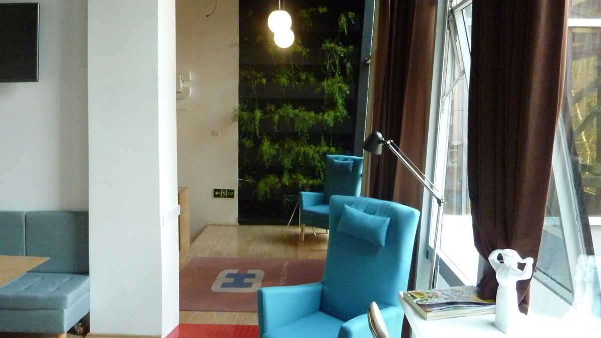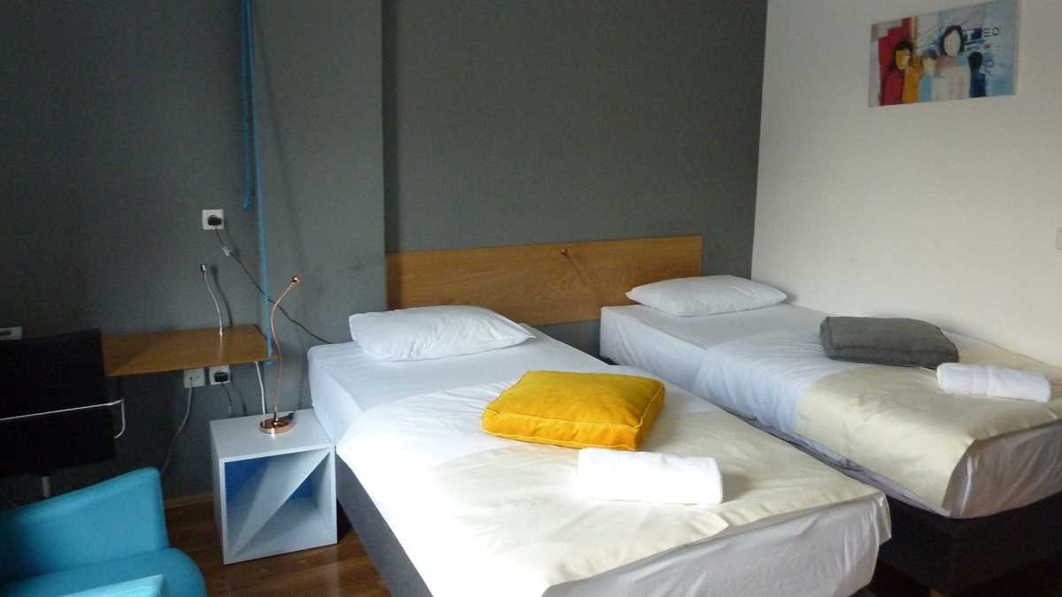Ambianța: De hotel-boutique cu aspect și senzație de hostel. Lobby-ul de lîngă recepție e un spațiu mobilat și decorat tinerește, modern și viu colorat, care seamănă perfect cu o cameră comună de hostel (canapea, automat de cafea și ceai, plită, frigider). Aici am savurat cu Wade, organizatorul, și cu prietenii lui sîrbi, rakija lui Nenad, o tărie cu care nu i-ar fi rușine niciunui pălincar de pe la noi.