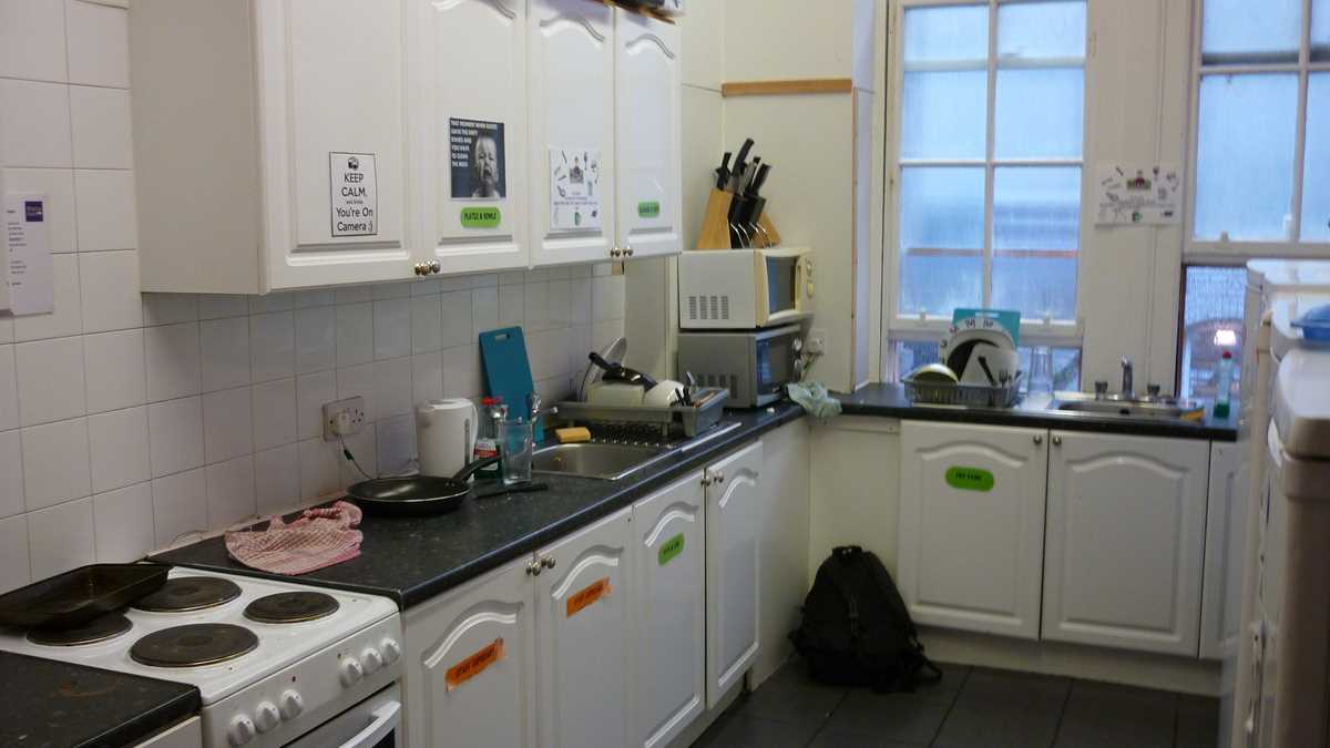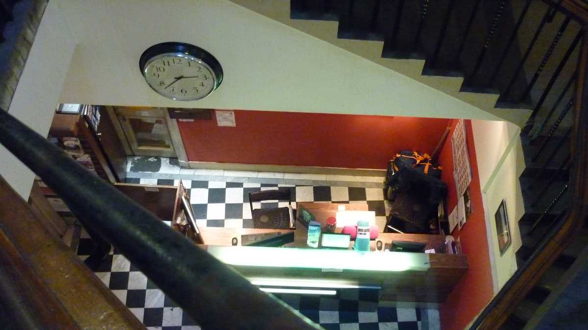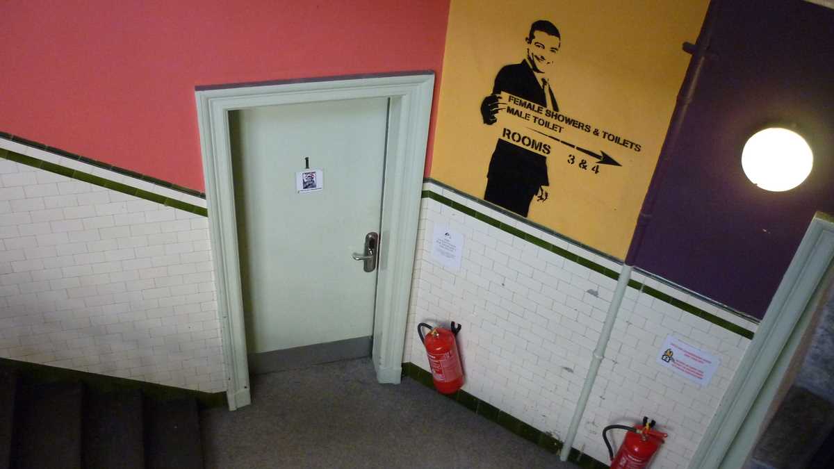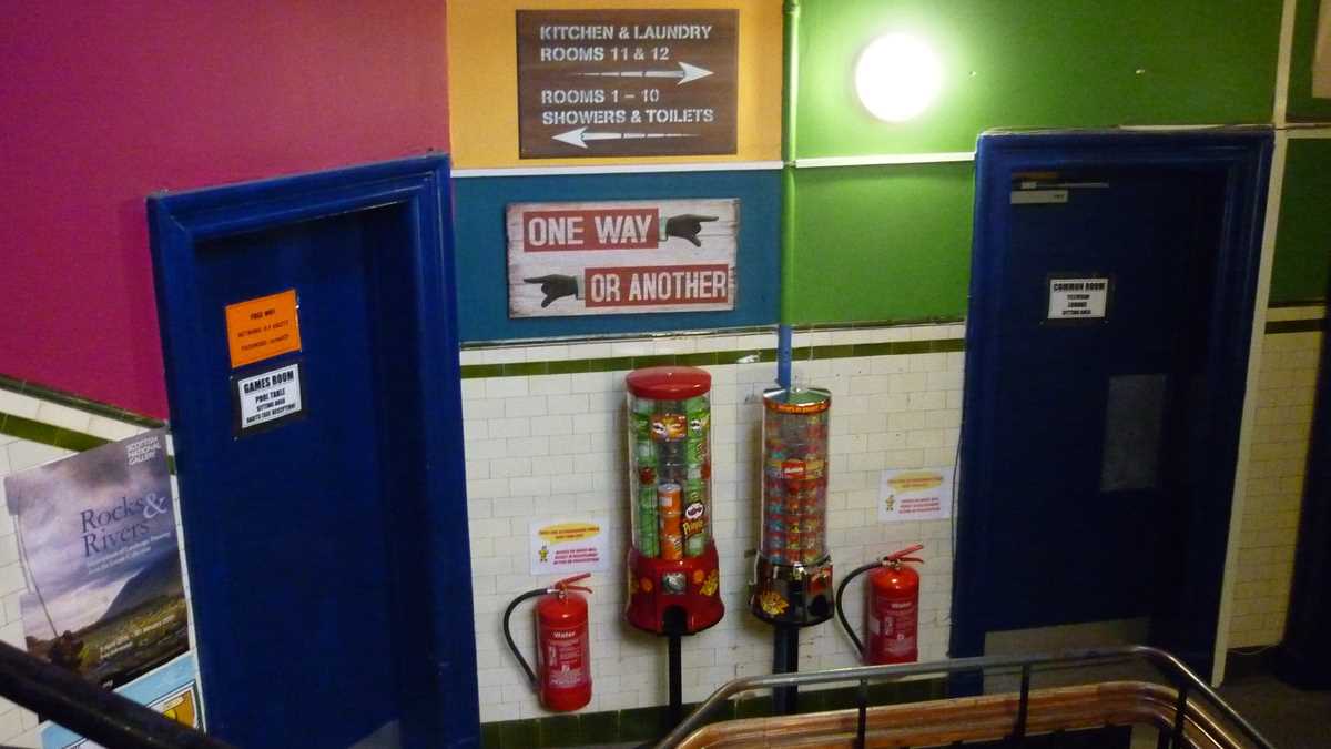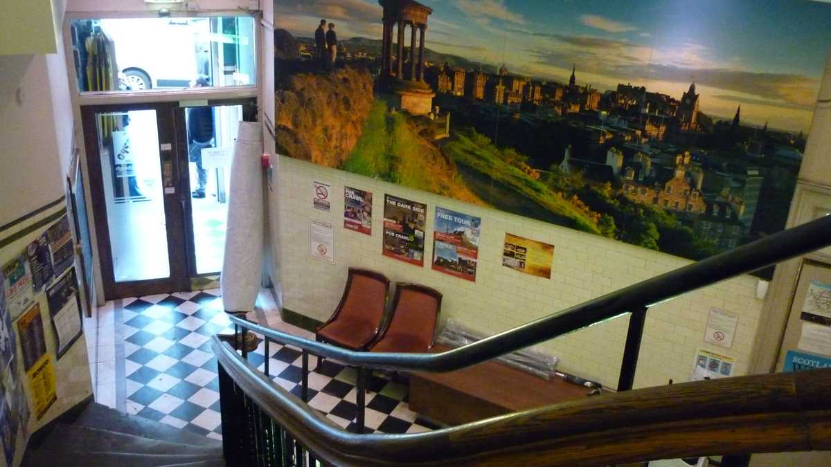 Ambianța: N-am stat suficient timp în apartamentul ăsta de o cameră împrăștiat pe trei niveluri (pentru bucătărie – complet echipată, dar foarte îngrămădită, pe un capăt de palier –, coboram la etajul 1, pentru duș și budă, urcam la etajul 3) ca să mă pătrund de atmosfera specifică de la Edinburgh Backpackers: după o zi de cutreierat orașul, am trecut prin cameră doar pentru un duș și un alt tricou, în drum spre Bannerman‘s. Tot ce-am remarcat e că nu aveam priză lîngă pat și a trebuit să-mi încarc laptopul pe colțul opus al camerei, într-un fel de donjon cu ferestre spre stradă. Și că e indicat să nu-ți uiți cardul de acces în cameră cînd pleci la dușuri, dacă nu vrei să tremuri pe hol și să zgîrii ușa pe dinafară, ca pisica.