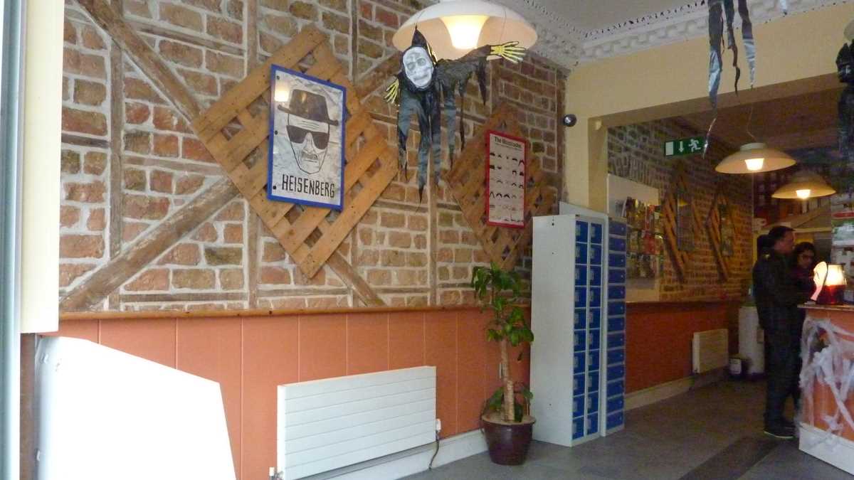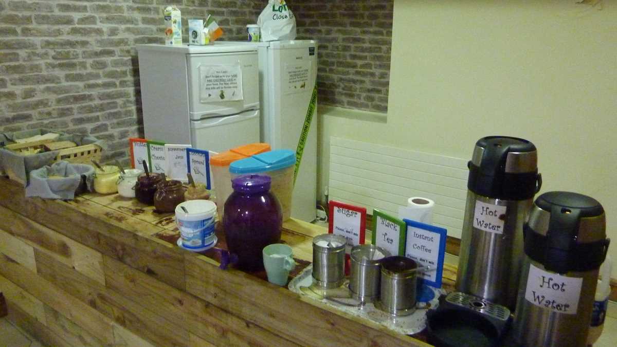 Prețurile: Mai puțin cei 18 euro, lăsați jos, la recepție. În afara patului, de banii ăștia, mai primești un mic dejun basic (lapte cu cereale, diferite chestii păstoase de întins pe pîine: unt, gem, ciocolată), autoservit între 7.30 și 9.30, în bucătăria de la subsol. Și un shot de bun venit, peste drum, în pub-ul The Luggage Room. Aici s-au cam terminat gratuitățile: pregătește 5 euro pentru cardul de acces (garanție recuperabilă la plecare), plus 3 euro pentru închirierea unui prosop, 3 euro pentru un lacăt, 4 euro pentru un adaptor de priză UK, dacă n-ai așa ceva și-ți trebuie neapărat.